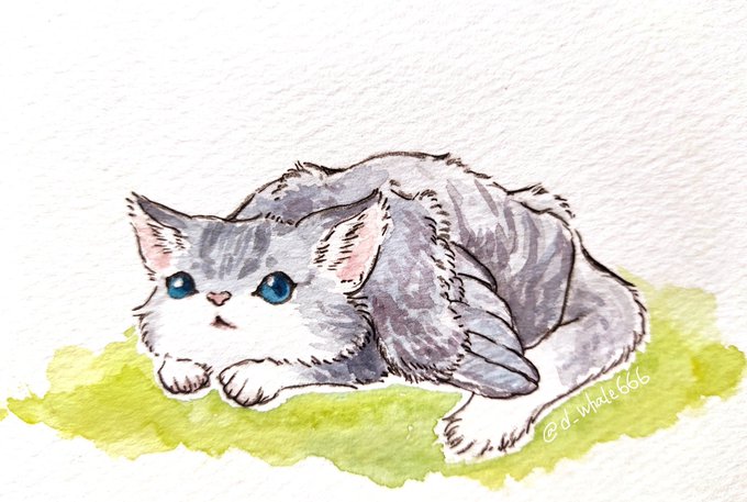1 8 #人外版深夜の真剣お絵描き60分一本勝負 「翼猫」 ひよこねこ 23/01/14 00:09