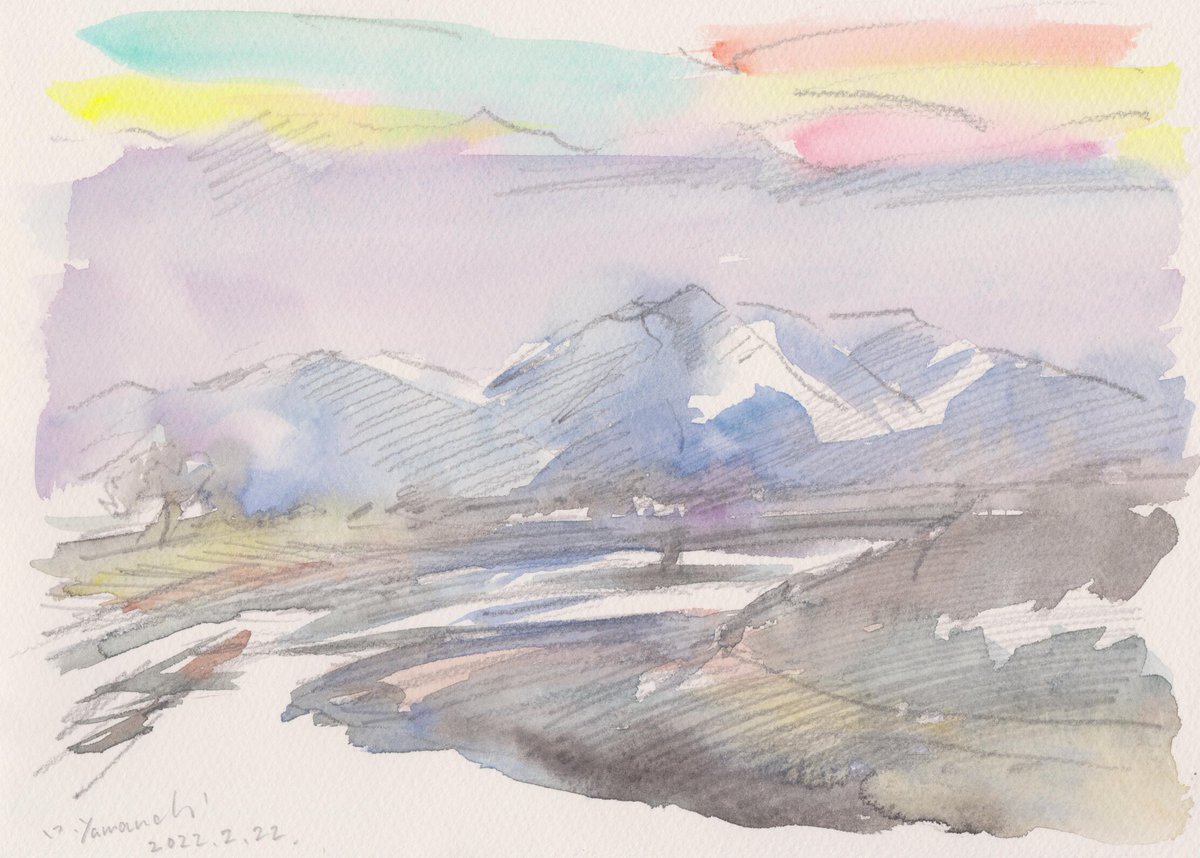 0 4 鈴鹿山から雪おろしの風が吹く。 #鈴鹿山脈 #水彩画 #アート 22/02/22 22:22