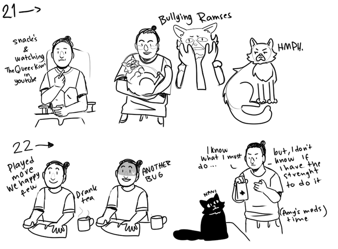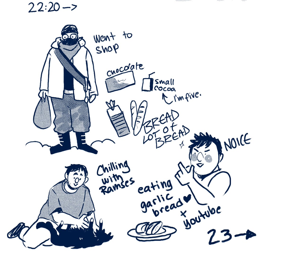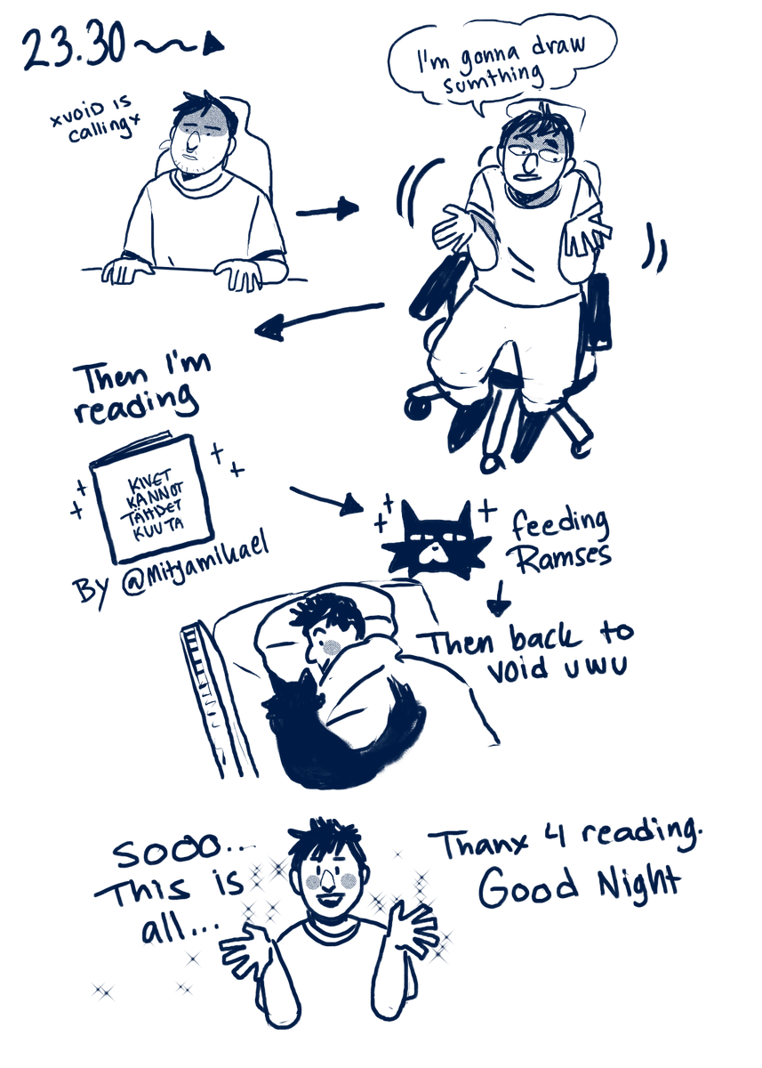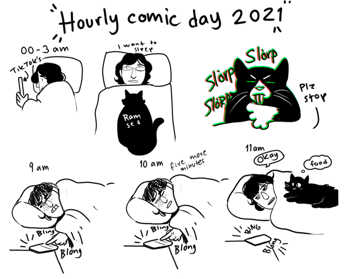 5/5 ✨Finished ✨This was fun, i've missed drawing these kinda small snippets of my life 😌 (even when my life is so very uneventful) #hourlycomicday2022