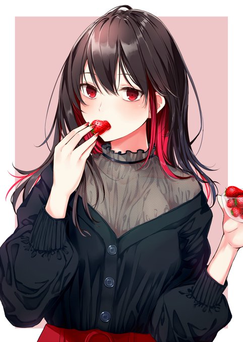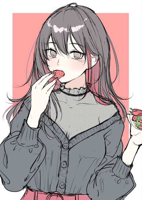 甘そうな色合いの女の子、描いてみました🍓🍓