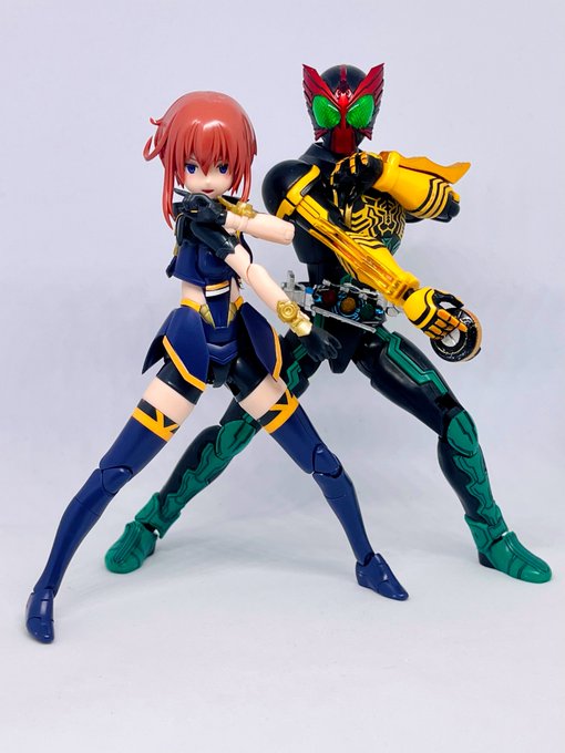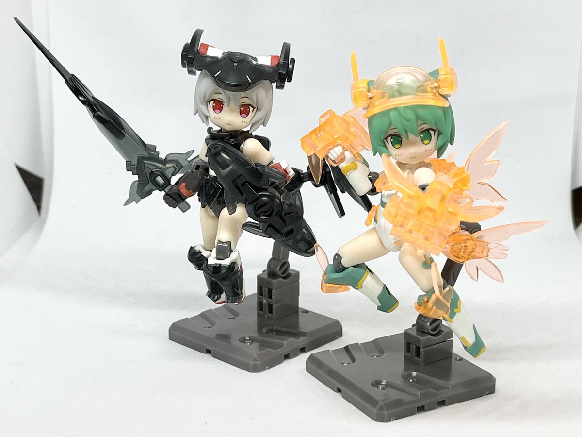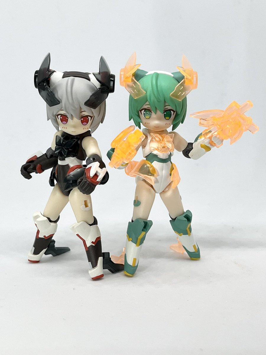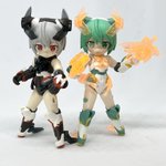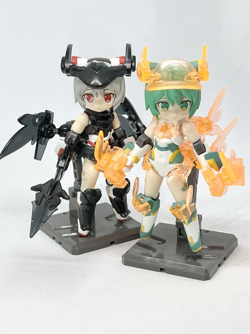 対になるであろう以前エディオン限定で配布されたアグレッサークリアオレンジver.を装備したフィーちゃんと一緒に。 約2年越しに遂に揃って感慨深いし、並べた時の特別感物凄い😆 #デスクトップアーミー