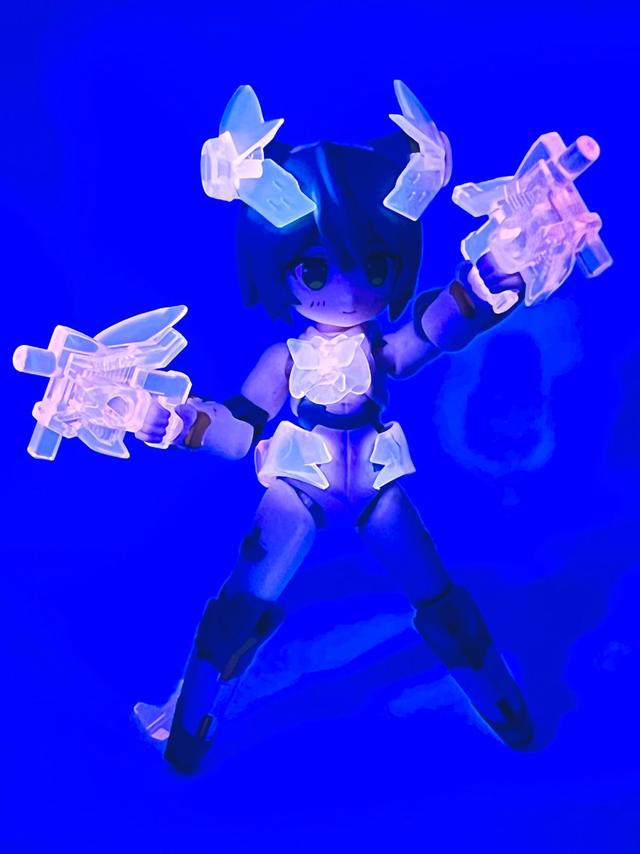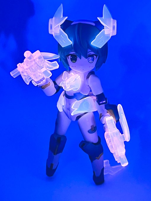 昨日載せたシルフィーⅡのエディオン限定パーツ、そういえばブラックライト当てた事無かったなぁと思って試してみたらいい感じに光ってくれた🤩 #デスクトップアーミー twitter.com/dablue_7916/…