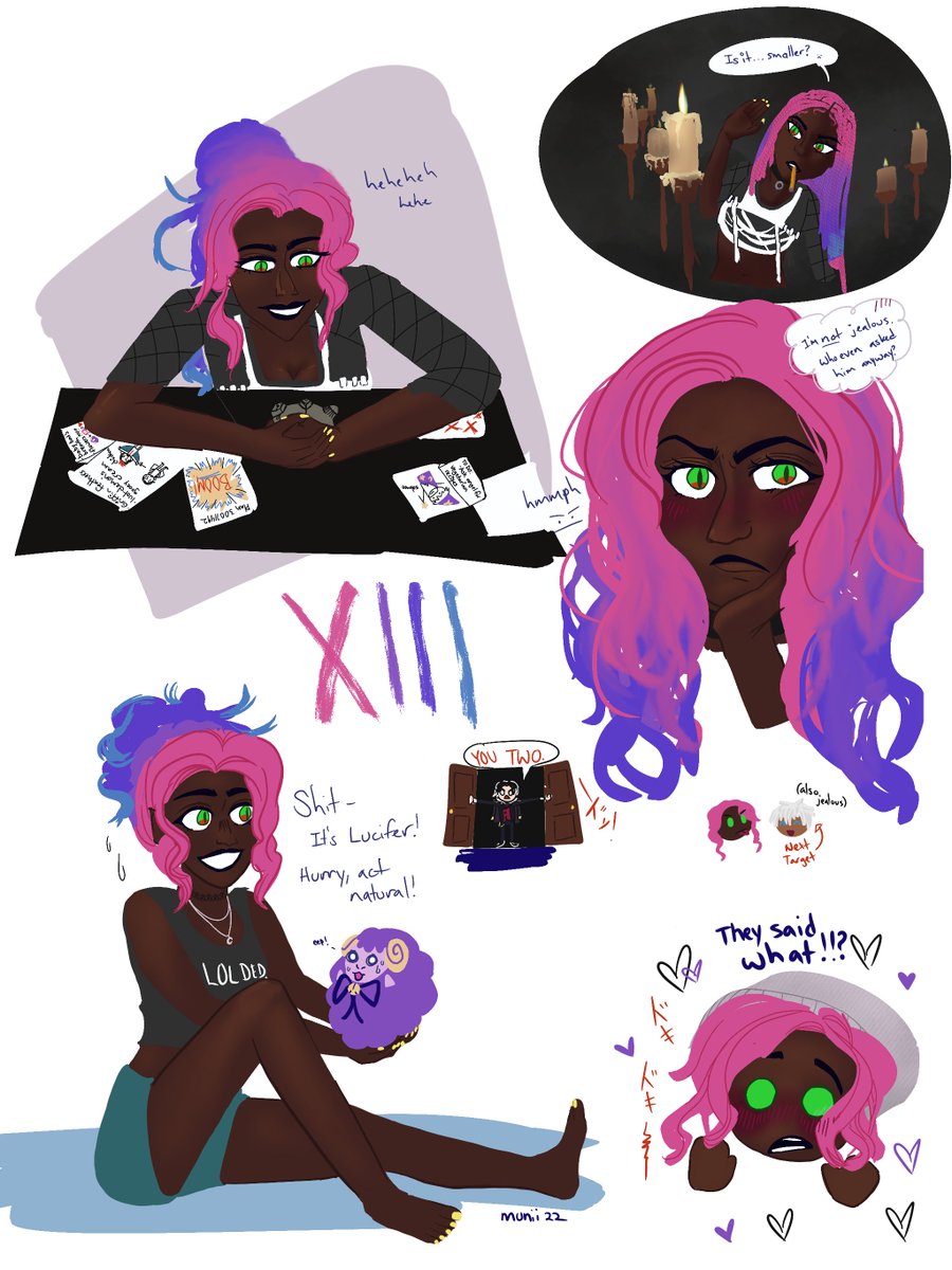“Pray tell, Thirteen, what makes you think Munii would like to be involved in one of your childish pranks?” A sapphic showdown by the amazing @obeynut 🖤✨ #obeyme #obeymelucifer #obeymethirteen #obeymefanart #おべいみー