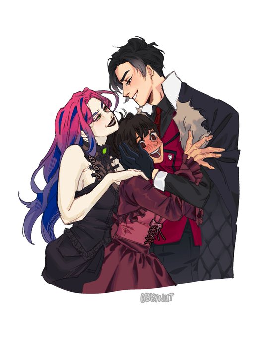 “Those two sure seem to have hit it off - wouldn’t you say so, Lucifer?” “Don‘t encourage them.” #obeymediavolo #obeymelucifer #obeymethirteen #obeymefanart #おべいみー