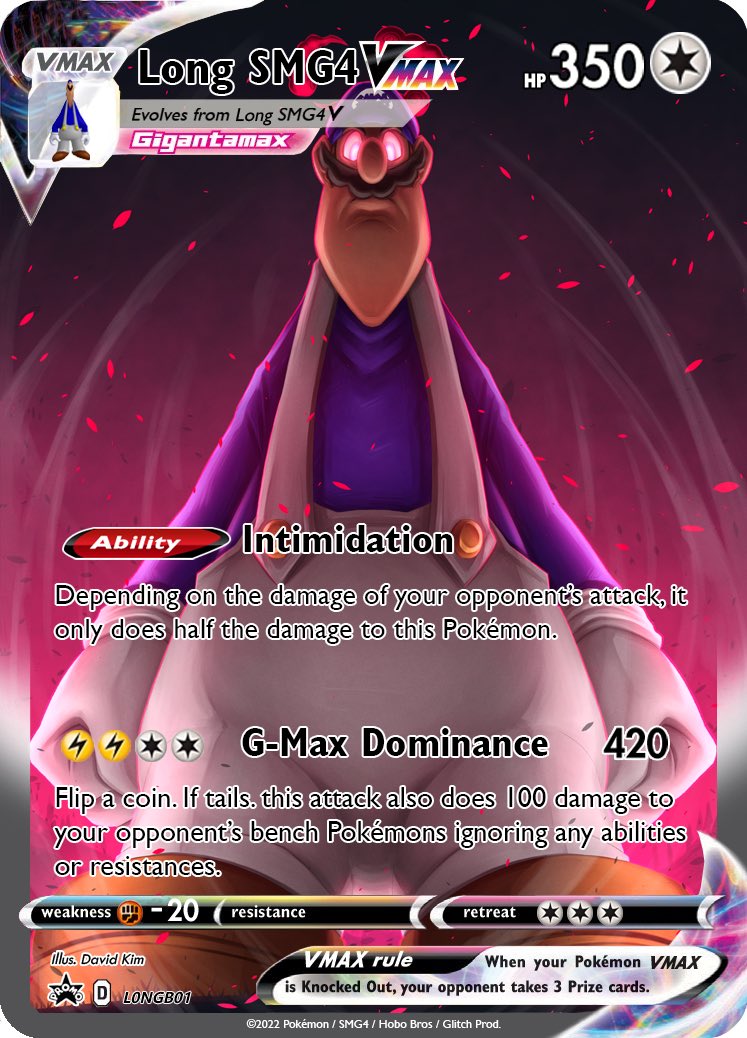 Long SMG4 Vmax | [SMG4 Series] | (2022) @smg4official @glitch_prod - It’s now complete. Both Beeg and Long SMG4 has been done. - #smg4 #glitchproductions #pokemoncustomcards #digitalart #digitalillustration #digitalartist #digitalartwork #artwork #illustration #ArtistOnTwitter