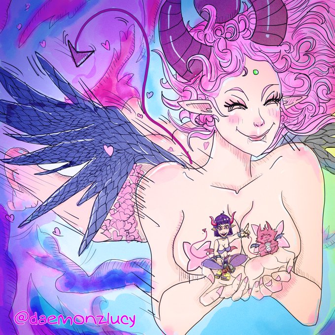 Day 6: #bouquet : "-Look, big Lady, i'm the one in chage in this territory did you get it?" 👿 "-Shut up Lucy" 😰 #inktober #noinktober #noinktoberfest #hornydemon #originalcharacter #drawing #draw #oc #illustrationart #art #digitalillustration #daemonzlucy #lucy #succubi #waifu