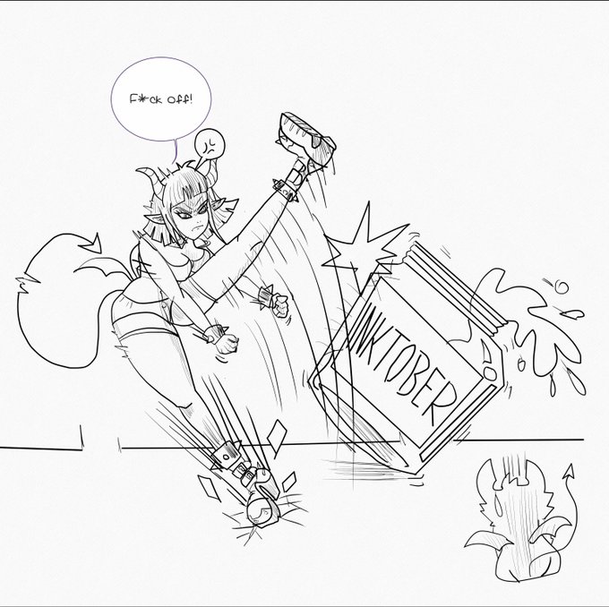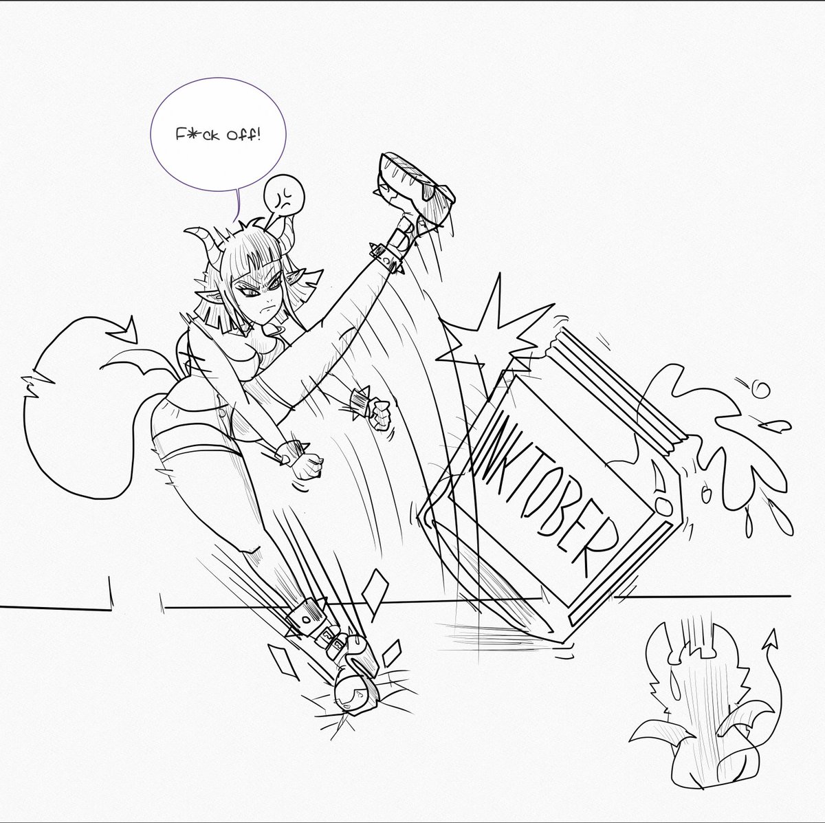 Day 2: Scurry (the flick that means?) Enjoy it, I like every second of doing it, but it was a mess, why am I like this? Hugs <3 #inktober #noinktober #noinktoberfest #hornydemon #originalcharacter #scurry #huida