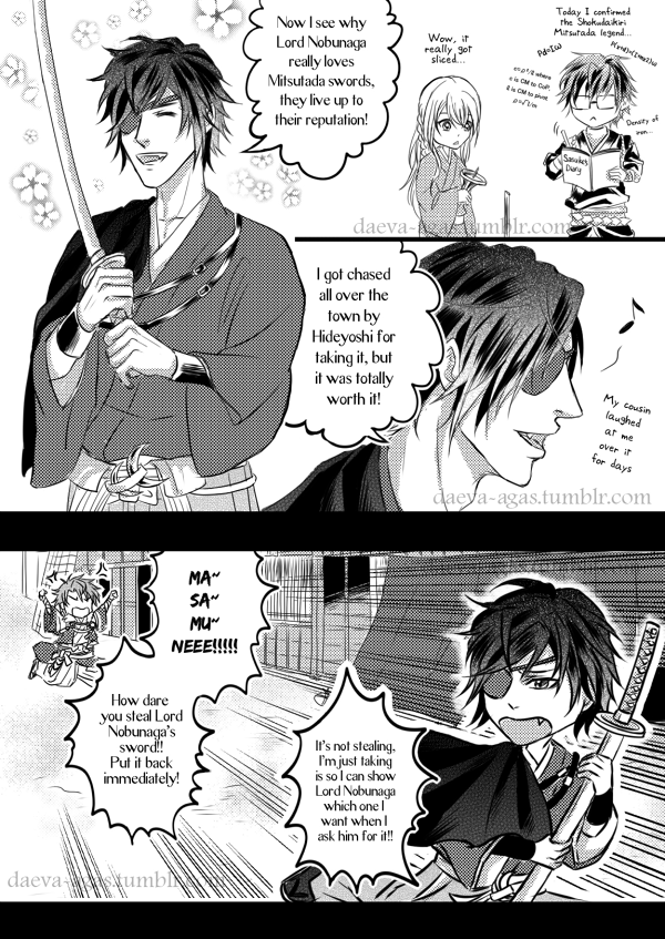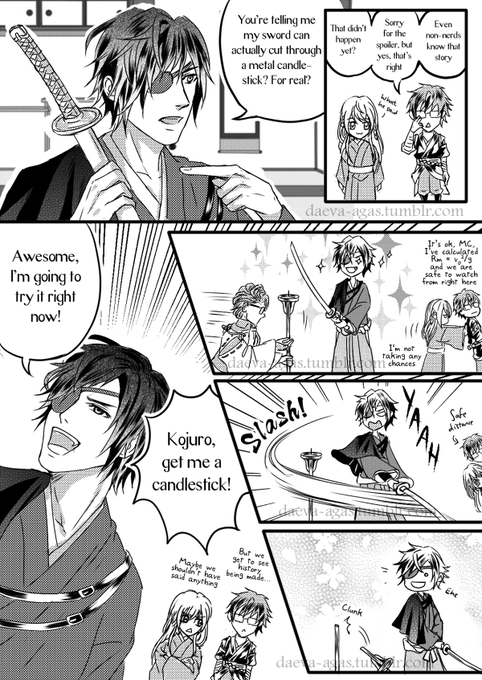 I know there's already a canon Shokudaikiri story event in #Ikesen but Masa being called thief and then chased around the town is just so much funnier. I considered drawing Shige laughing at Masa in the last panel, but it's too crowded already LOL 🤣😂 #ikemensengoku #イケ戦FA