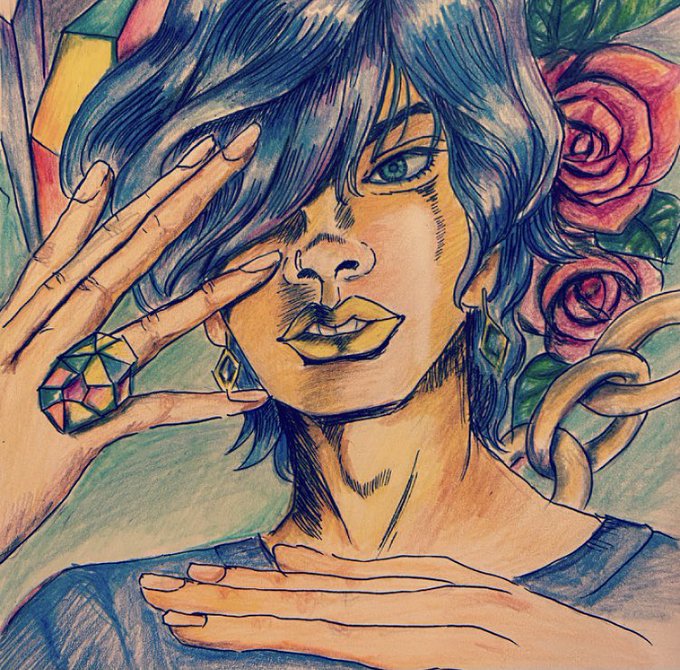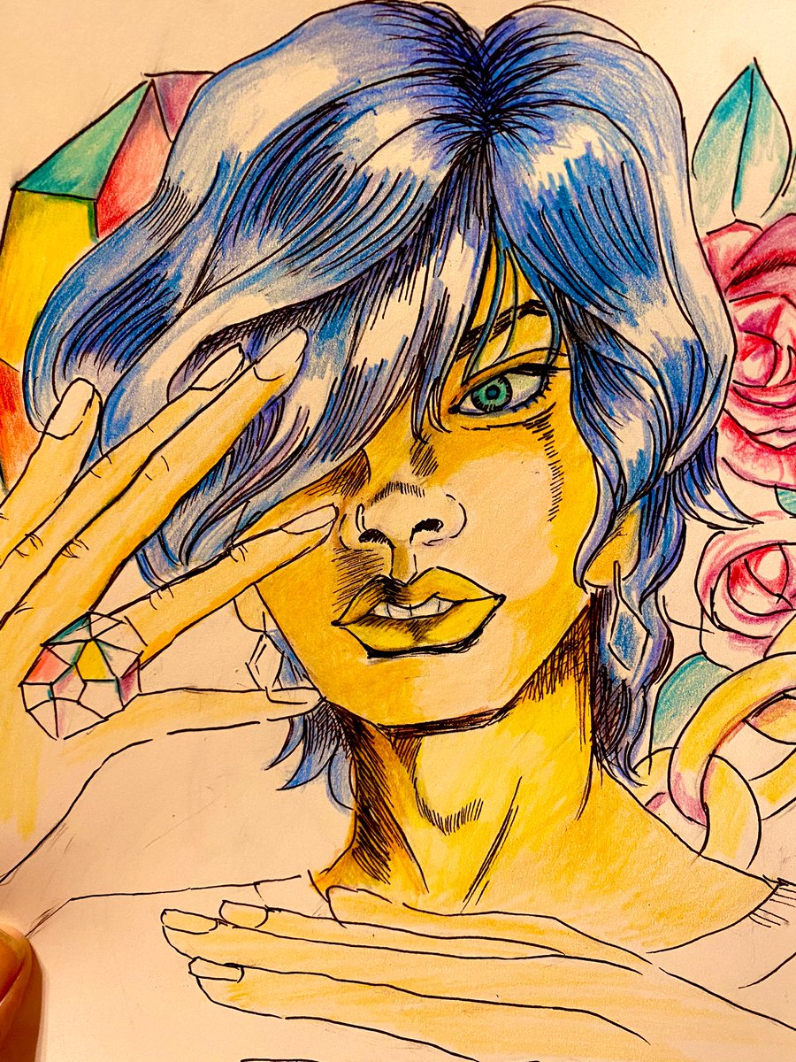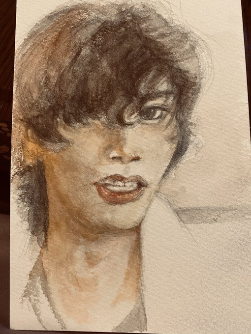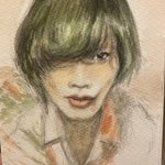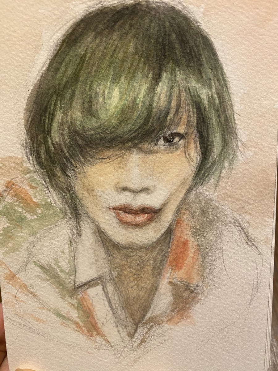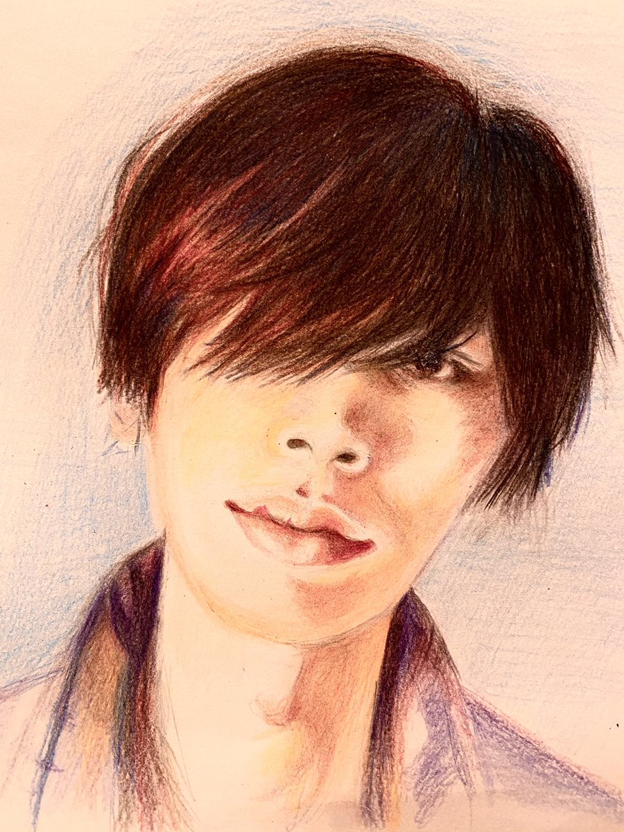 描いたものと撮影したものがビミョーに違うのは照明のせい?角度のせい? あーまた、目がビック〜🎵 かわいいからいいや💕 #色鉛筆画 #米津玄師 #米津玄師ファンアート #米津玄師さん好きな人と繋がりたい