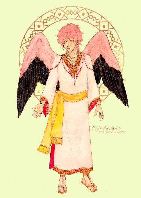 【PFSOZ】金環のまぼろし | ダリア💎🏜 pixiv.net/artworks/10334… 🦩 昏い砂漠で迷っても、陽炎が消えぬうちに きっとオアシスへ辿り着ける ツバサ君へのお守りです。 #PFSOZ #pixivファンタジアSOZ