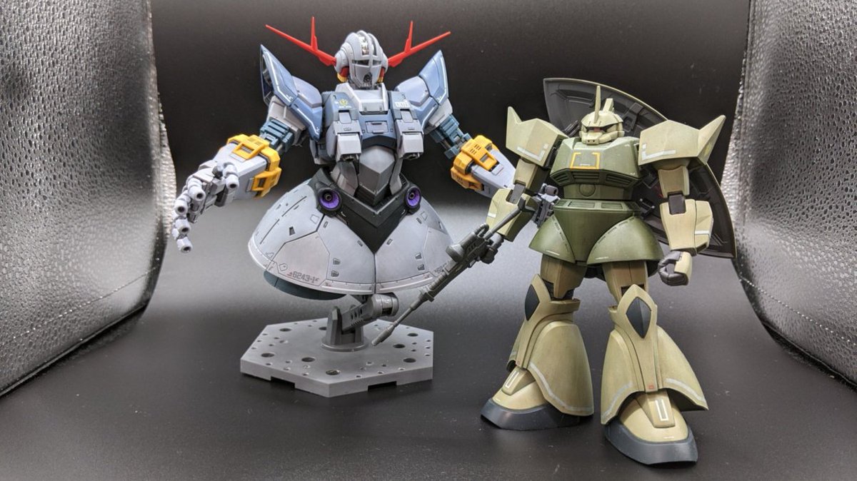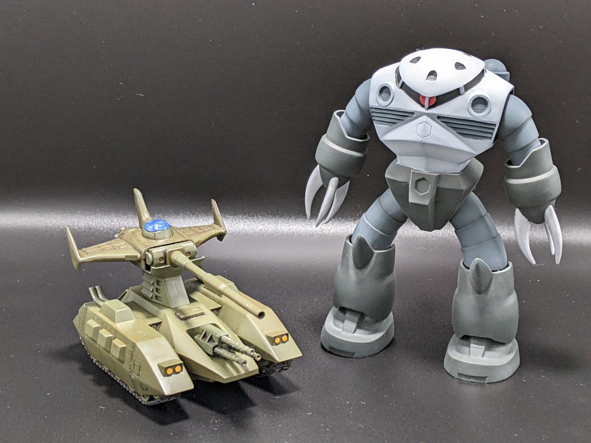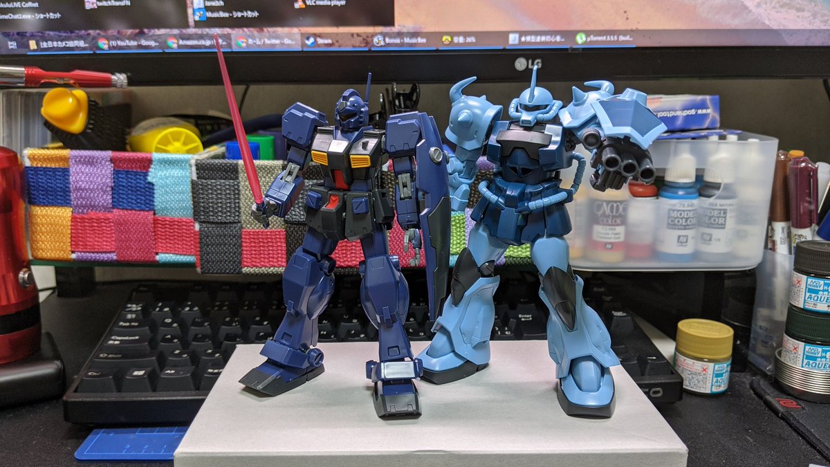 #今月作ったプラモ晒そうぜ 今月は初めて #1dayモデリングT製作会 に参加させて頂いて、ゲルググを成型色活かしで仕上げてみました☺️ ザク系とバイアランカスタムは素組みです。 #ガンプラ #ガンプラ好きと繋がりたい #ガンダムアーティファクト
