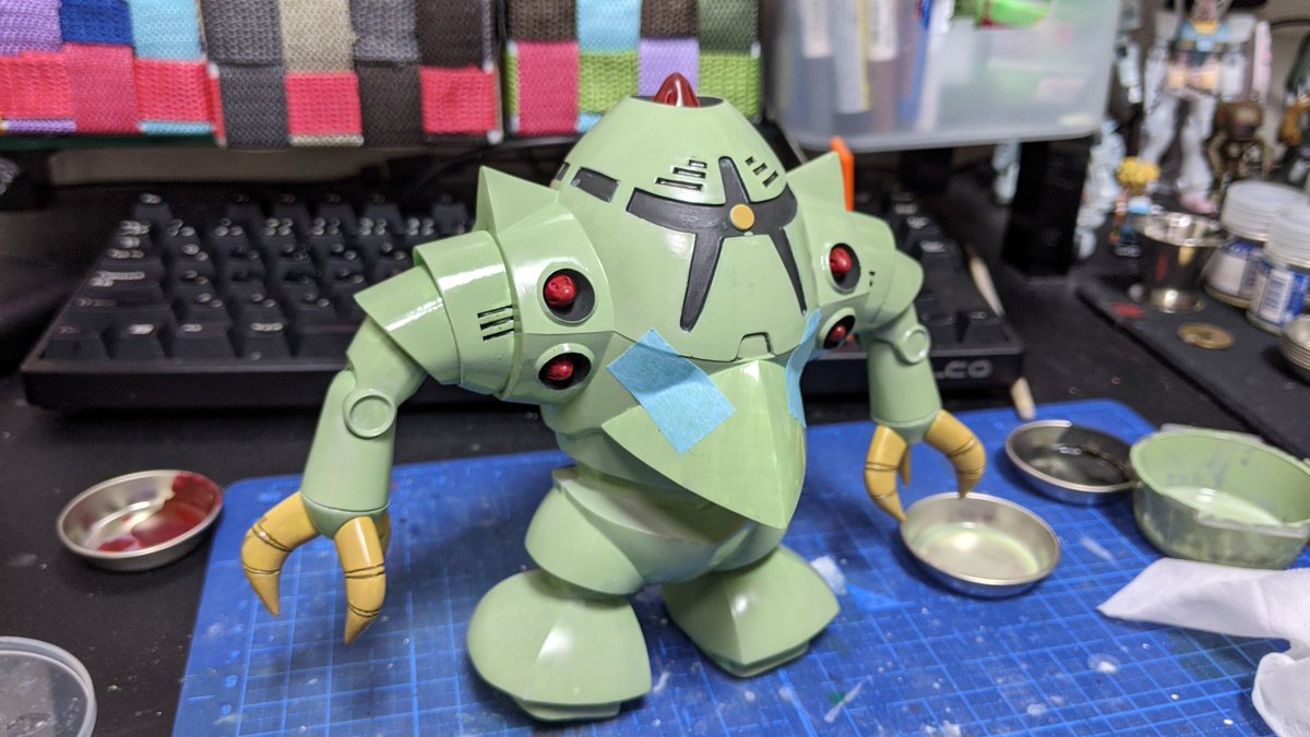 #今月作ったプラモ晒そうぜ もう4月に入っちゃってますが、3月は旧キットゾックだけでした。 #1dayモデリングT製作会 にて、水性ホビーカラーの筆塗りです✌️👴✌️ #ガンプラ #ガンプラ好きと繋がりたい