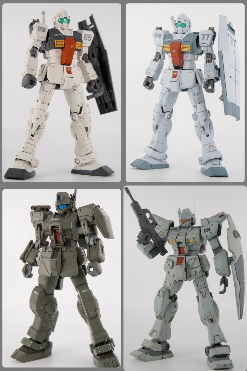 #今月作ったプラモ晒そうぜ 日付けが変わってしまいましたが、11月に作ったガンプラです。 ザクとジムスナイパーIIが部分塗装とウェザリングのみ、グフカスタムとジムクゥエルが素組みです👴 グフは良キットだったので12月中に最後まで仕上げたいですね😊