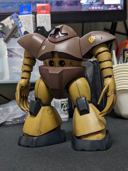 おはようございます👴 昨日はゴッグのウェザリングとデカール貼りを終わらせました。 ゴッグだけにお決まりの59のナンバリング、やらせていただきました🙄 #ガンプラ好きと繋がりたい #ガンプラの画像を貼るとRTされると聞いて
