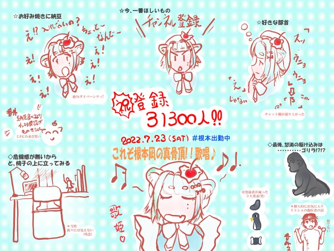 0 9 昨日の耐久配信、とっても楽しかった♪ その中でも個人的にツボったところをイラストにしてみた。(上手じゃないけど) 他にも面白い場面沢山あります。是非みてね~。 youtube.com/watch?v=8MdDDw… #根本出勤中 #聞いてよ根本 #ねもあーと 改めて、目標達成おめでとう凪ちゃん💚💙☕️💫 22/07/24 15:57