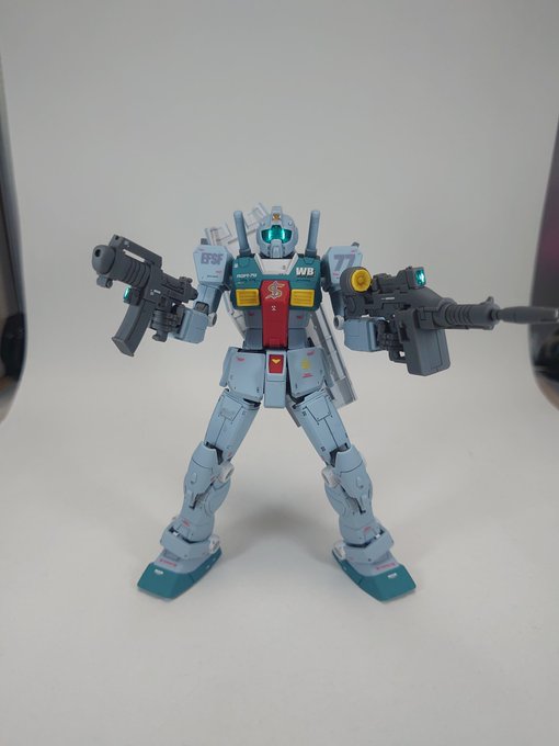 素組みでは10体くらい組んでますが、デカールまで完成させたの今年2体目のスレッガージムです 左の銃持ち手が嬉し過ぎる左利きです✋ #ガンプラ #gunpla #ジム #スレッガー機