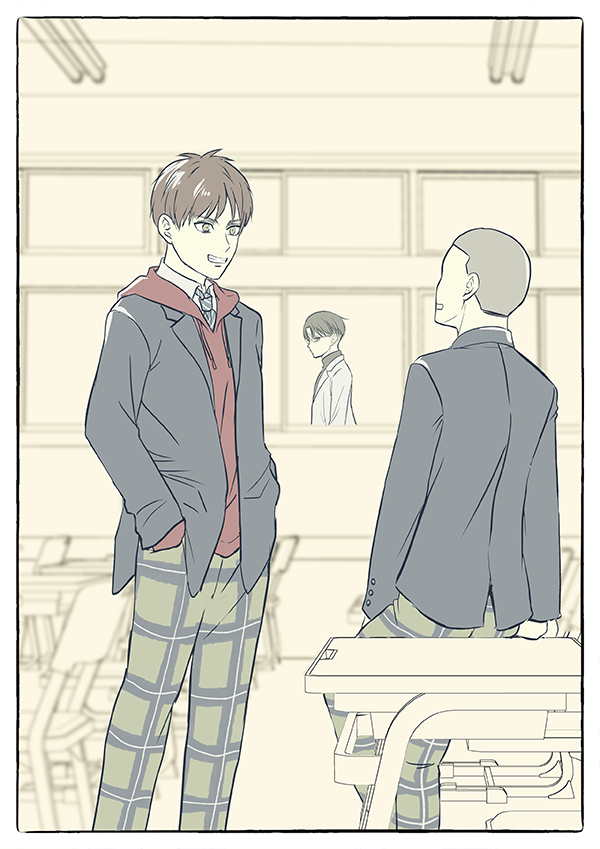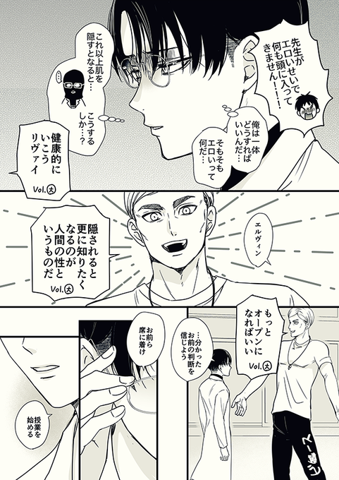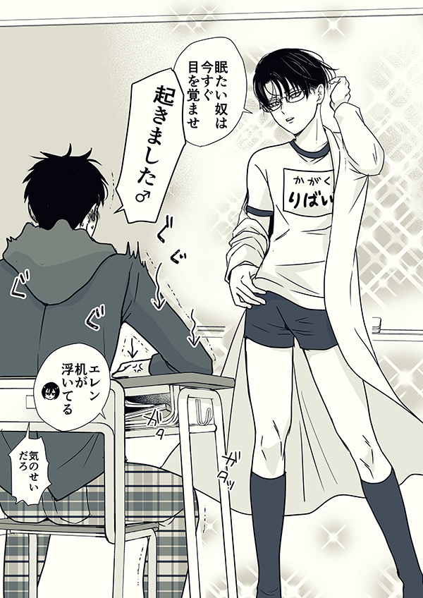 エレリ ひらぶーに間に合わなかったけど間に合わなくてよかったかもしれない😂授業中にうっかり勃♂して机を持ち上げてしまうネタ何だったっけ…と思いながら描いてて思い出した 変🩲仮面でした