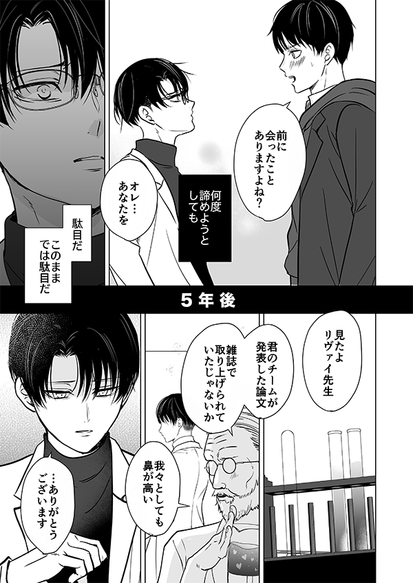 54 253 エレリ ※オメガバ〜ス 6月25日のイベントで無料配布したノ♂エースネタのエレリです。運命のショタに出会ってしまうりばい先生っていいよねヘヘ…という気持ちで描きました!いつかちゃんと描いてみたいナ- 23/06/30 19:20