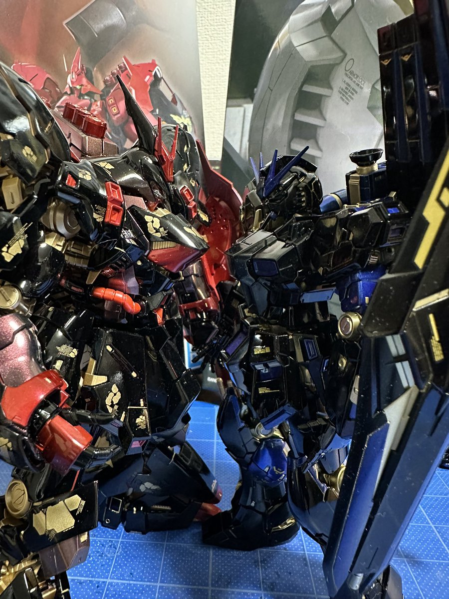ご無沙汰です😂 HGハイニューとシナンジュのミキシング完成❗️ミキシングって言っていいのかわからないけど…🤔 #ガンプラ #ガンプラ好きな人と繋がりたい #ガンプラの画像を貼るとRTされると聞いて #ガンプラは自由だ