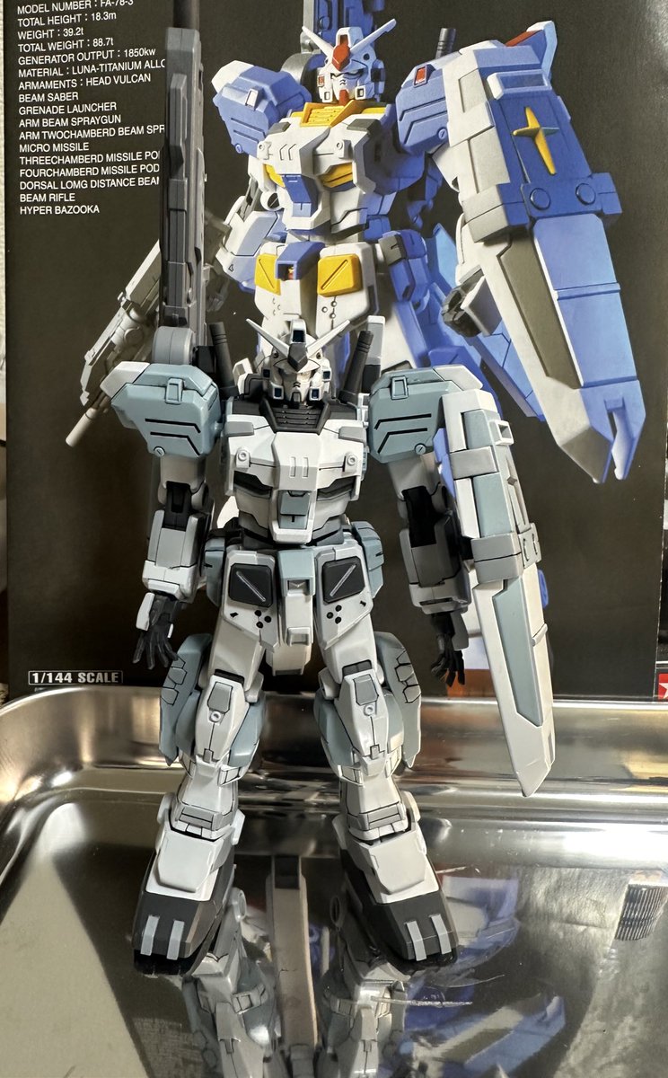 とりあえずHGフルアーマーガンダム7号機完成〜 なんかパッとしない感じになっちゃった😇 ブルーグレーのとこもっとはっきりした色にしないとダメだね🤔 スミ入れもスジボリもダルダルだし笑 #ガンプラ #ガンプラ好きと繋がりたい #ガンプラは自由だ #ガンプラの画像を貼るとRTされると聞いて