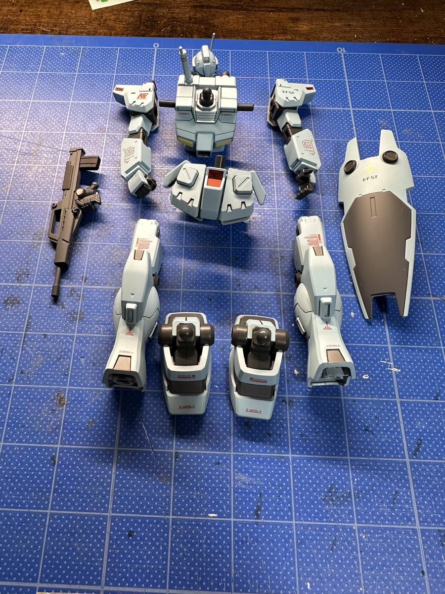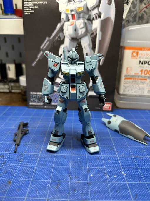 HG ジムカスタム完成〜! だいぶ荒いとこばっかりでダメだ…😭 #ガンプラ #ガンプラ好きな人と繋がりたい #ガンプラはどんな自由な発想で作ってもいいんだ #ガンプラの画像貼るとRTされると聞いて