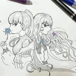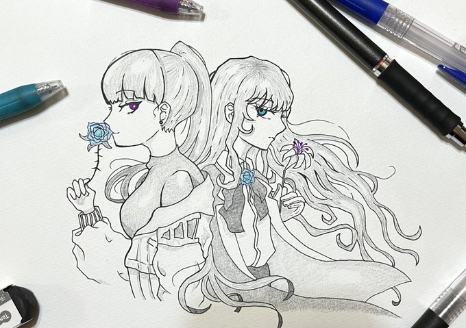 「契り──」 ずっと描きたかった一枚です!久々のアナログ吉乃さんと1年半ぶりくらいのあどさんです〜、小説は書けないのでイラストで失礼します...!!💜💙(明るさ調整で再掲です…...) #yoshinoe #Adoart #吉アド