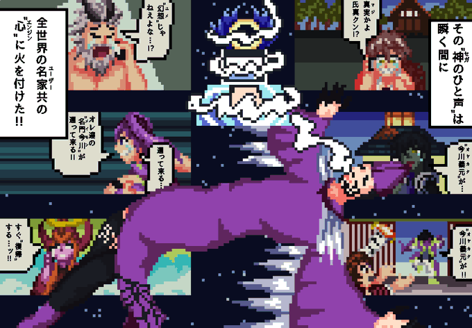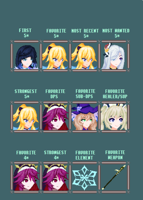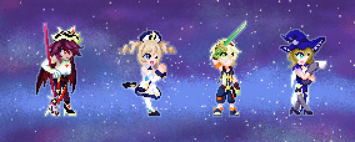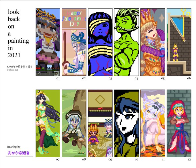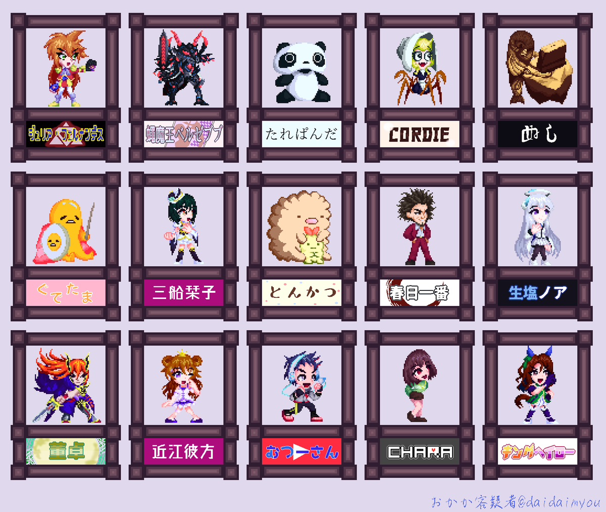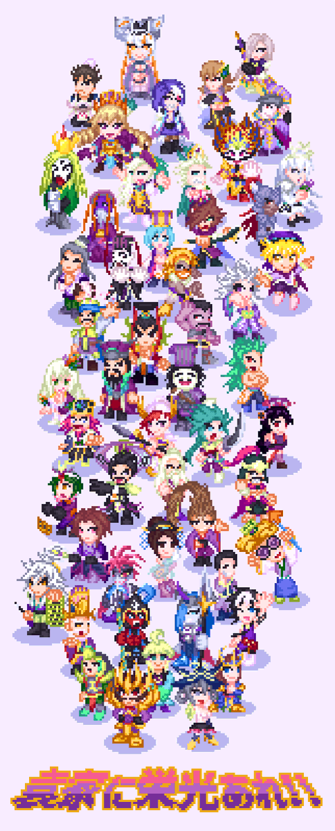#フォロワーさんの推しが描きたい #pixelart 企画絵完成しましたー! ほぼジャンル外、そして実に多様な推しが揃っておもしろい画面になってますなあ。とても勉強になりました。ありがとうございました!!