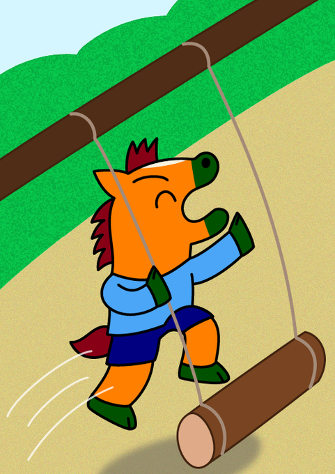 「わ~い、今日はブランコ乗り放題だ!」 大人気のブランコが珍しく空いていて、大喜びのダイちゃん🐴🎶 絵からは分からないけど、実はこの後、とある悲劇が待ち受けています💦 その悲劇とは…また後日公開予定です📖 #イラスト #オリジナルキャラクター #illustration