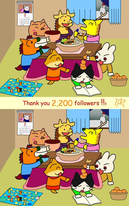 ㊗2,200フォロワーありがとうございます🎉 1月中に投稿するつもりが、遅くなりました💦 寒い日は、みんなで仲良くおこたであったか🔥 お鍋も食べごろのようです🍲 恒例の絵違い探し、今回は違うところがいつもより少なめの10個🔍 じっくりと探してみてね😉 #illustration #イラスト