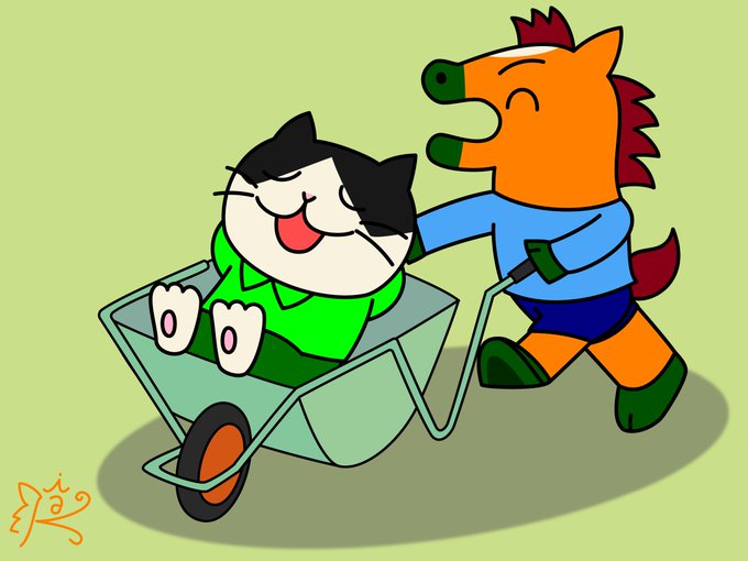 猫車でタクシーごっこ🚙 🐴「お客さん、今日はどこまで?」 🐈⬛「う~ん、特にアテも無く、綺麗な景色が見たいねぇ」 ちなみに「猫車」と呼ぶ由来は形が猫背に似ている、ゴロゴロと音を立てる、狭いところでも走れる等、諸説あるらしい。 #イラスト #illustration #オリジナルキャラクター