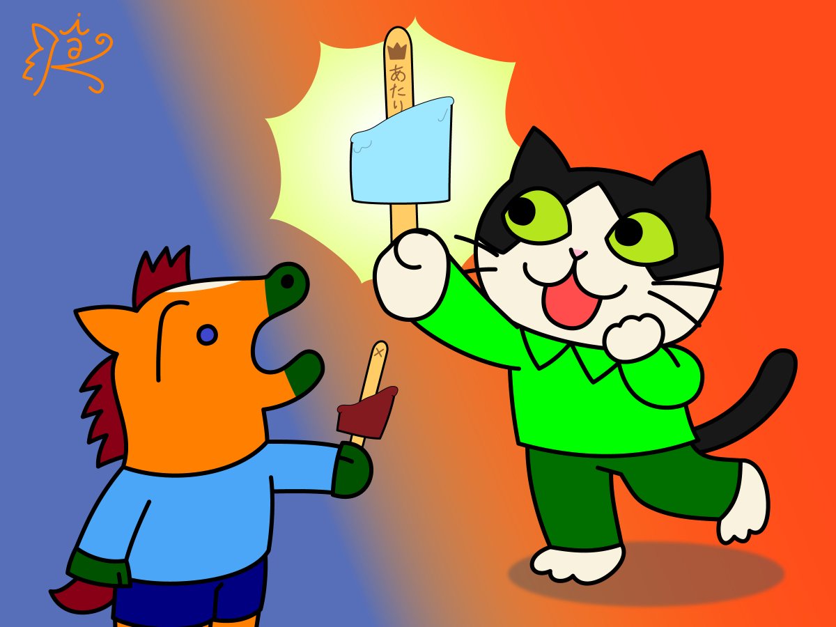 あたりが出たら嬉しいな👑 🐈⬛「アハッ、あたりだぁ!」 🐴「いいなぁ、ぼくは一度も当たったことないよ…」 よく当たる人は当たるけど、当たらない人は当たらない気がする…気のせいでしょうか? ちなみに私はくじ運がすこぶる悪いと自覚しております💦 #イラスト #illustration