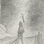 #ウェザロアート 初投稿です⁈ 以前「田植え」で挑戦させて頂いたのですが、何処へ送信したのやら… やはり、色まで辿り着けず、鉛筆で失礼します。アンニュイなポン子ちゃん。星空を、大三角を見上げて想うは… 「忘れたくないのに 忘れてしまう」物語。 「君の知らない物語」に乗せて♪