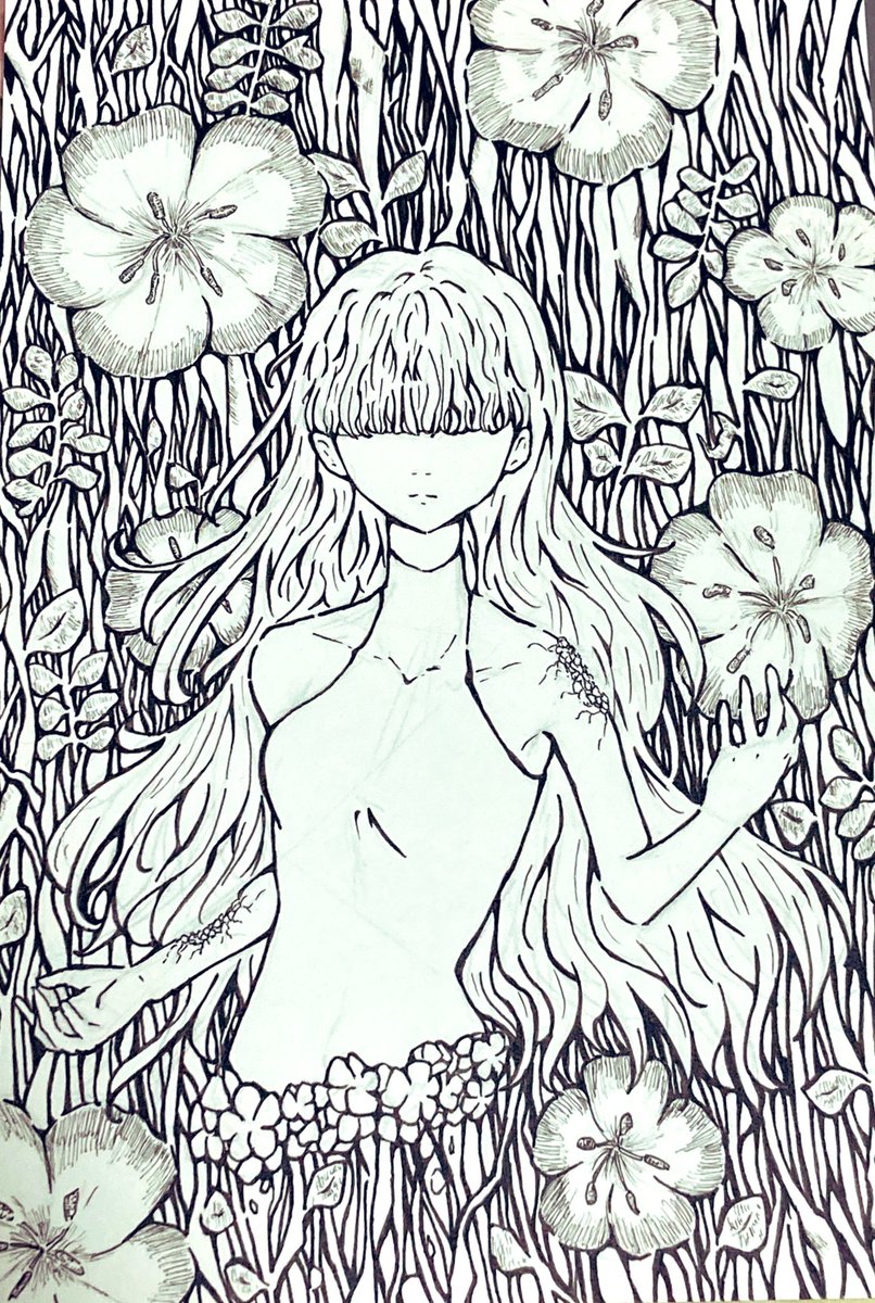 0 10 描くの楽しすぎた…! #花 #イラスト #ペン画 22/02/09 20:59