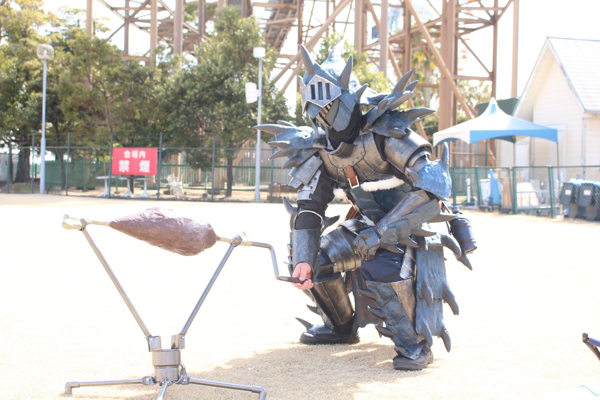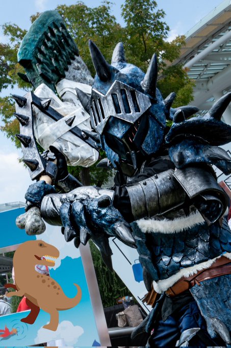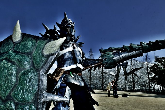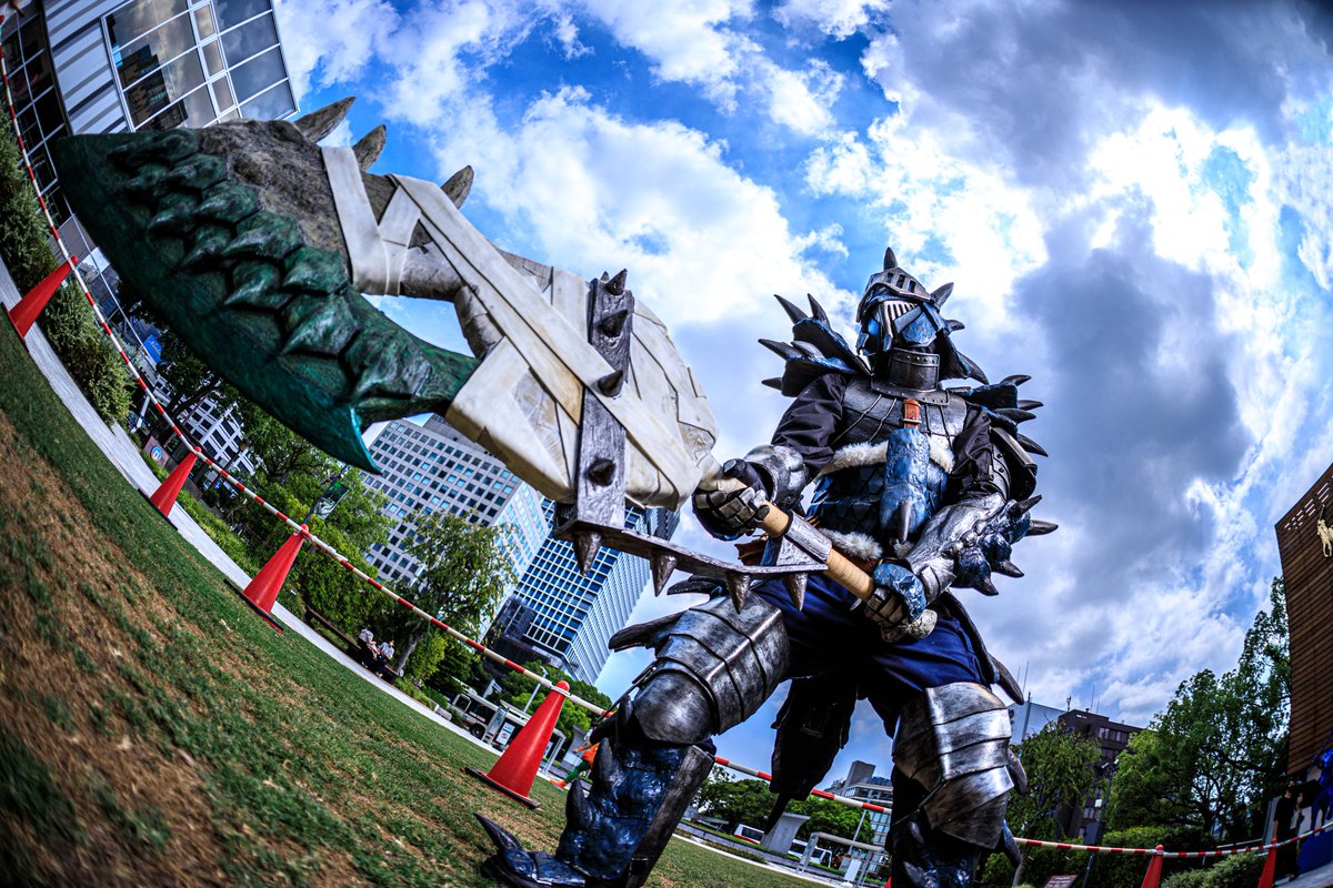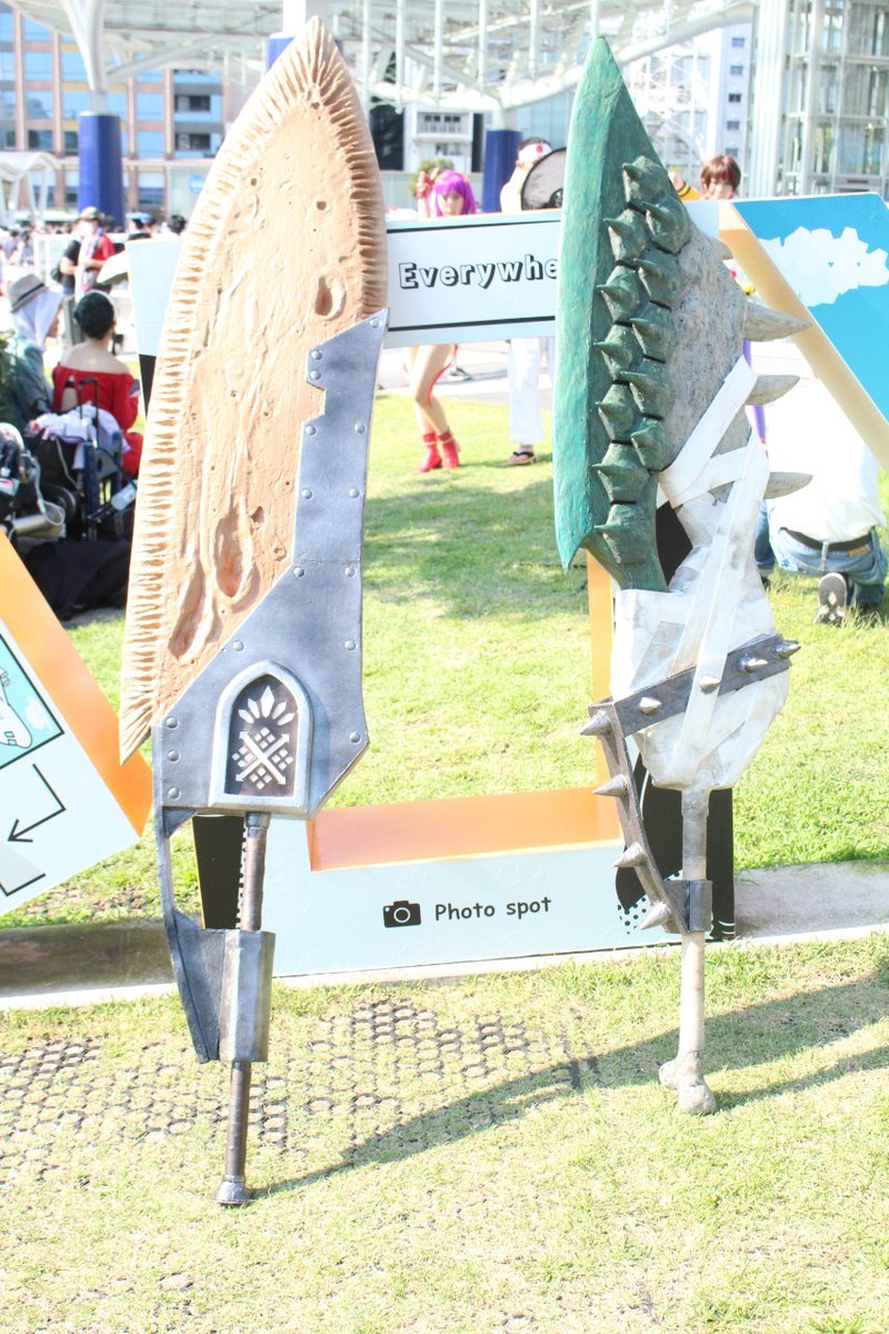 #最新作を貼って5リツイートを目指せ #スラッシュアックス #モンハン #コスプレ リオレイアのスラッシュアックスを大剣の炎剣リオレウスのイメージを入れてアレンジしてみました。 レイアなので金属系入れてます。 昨日完成したばかりのホヤホヤでござります