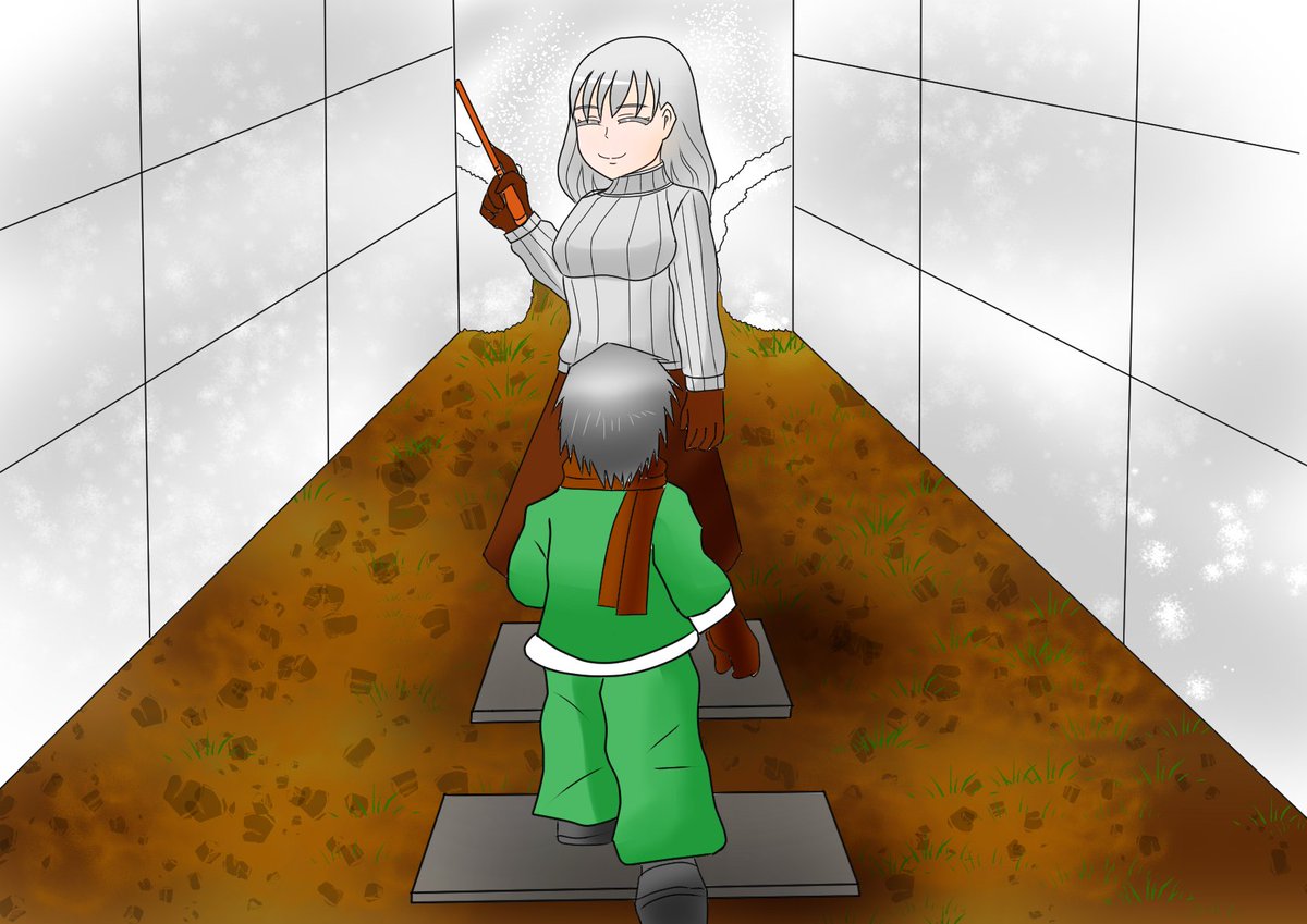 冒険者ゼロの日常 小さいころ朝起きると母親は魔法で雪かきを一瞬で終わらせていた。 ゼロ「母さんならこんなの一瞬で終わらせるのにな」 弟子「いや・・・これほどの量10分もせずに終わらせる先生もたいがいじゃないですか・・・」 #イラスト #絵柄が好みって人にフォローされたい