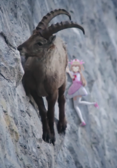 240 1045 岩に付いた塩を舐めるために断崖絶壁に張り付く山羊と名取さな 21/12/13 17:06