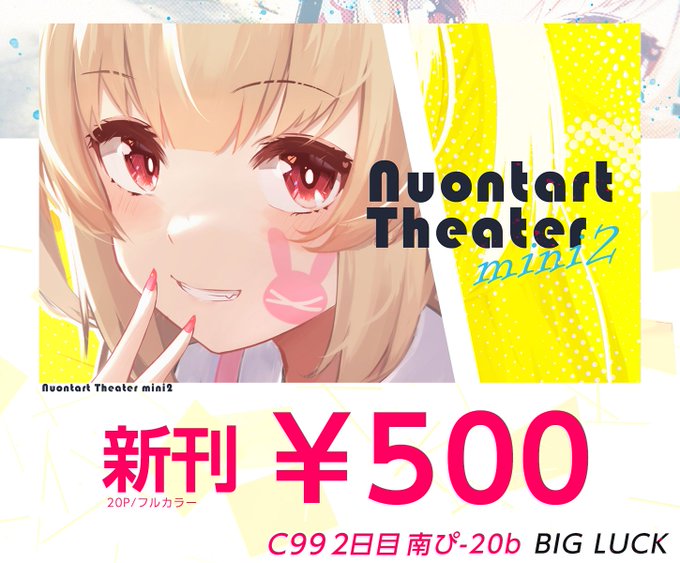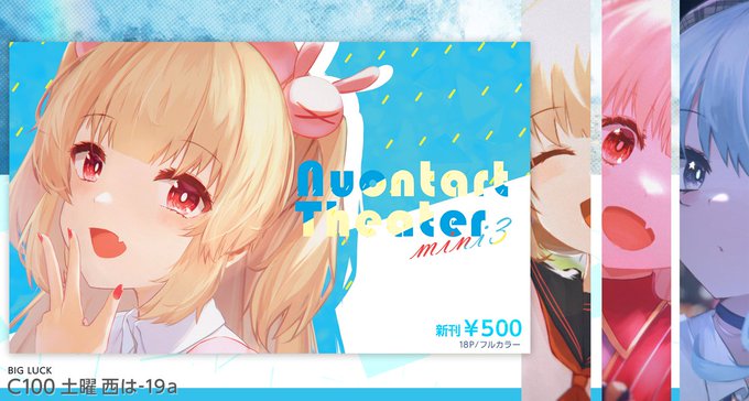 26 95 C100告知です! 土曜西は-19aにて今まで描いた名取さなさんのイラストと色々なVtuber様方のイラストを少しまとめた本を出します! 今まで同じく小さくてかわいいサイズの本に仕上がりました! よろしくお願いします! 22/08/09 17:30