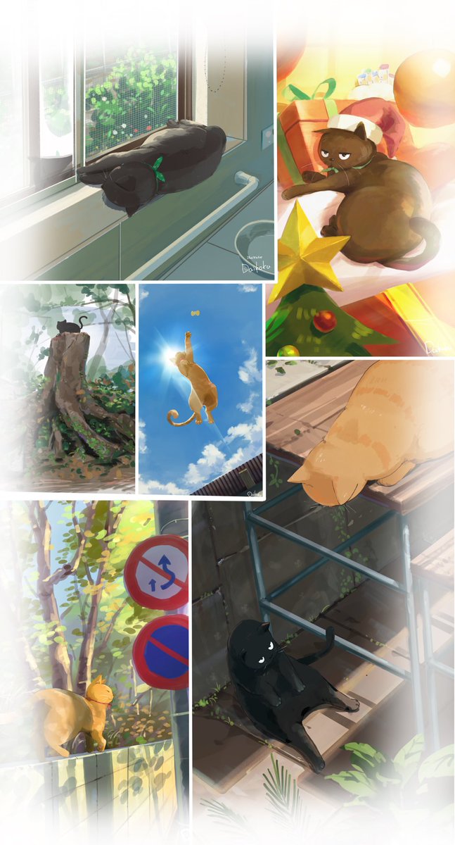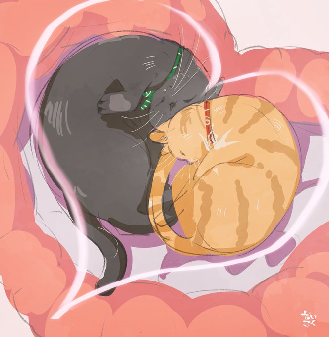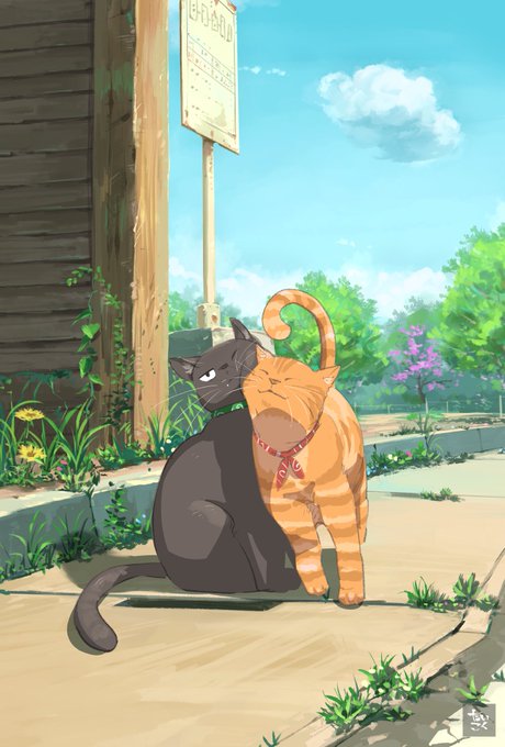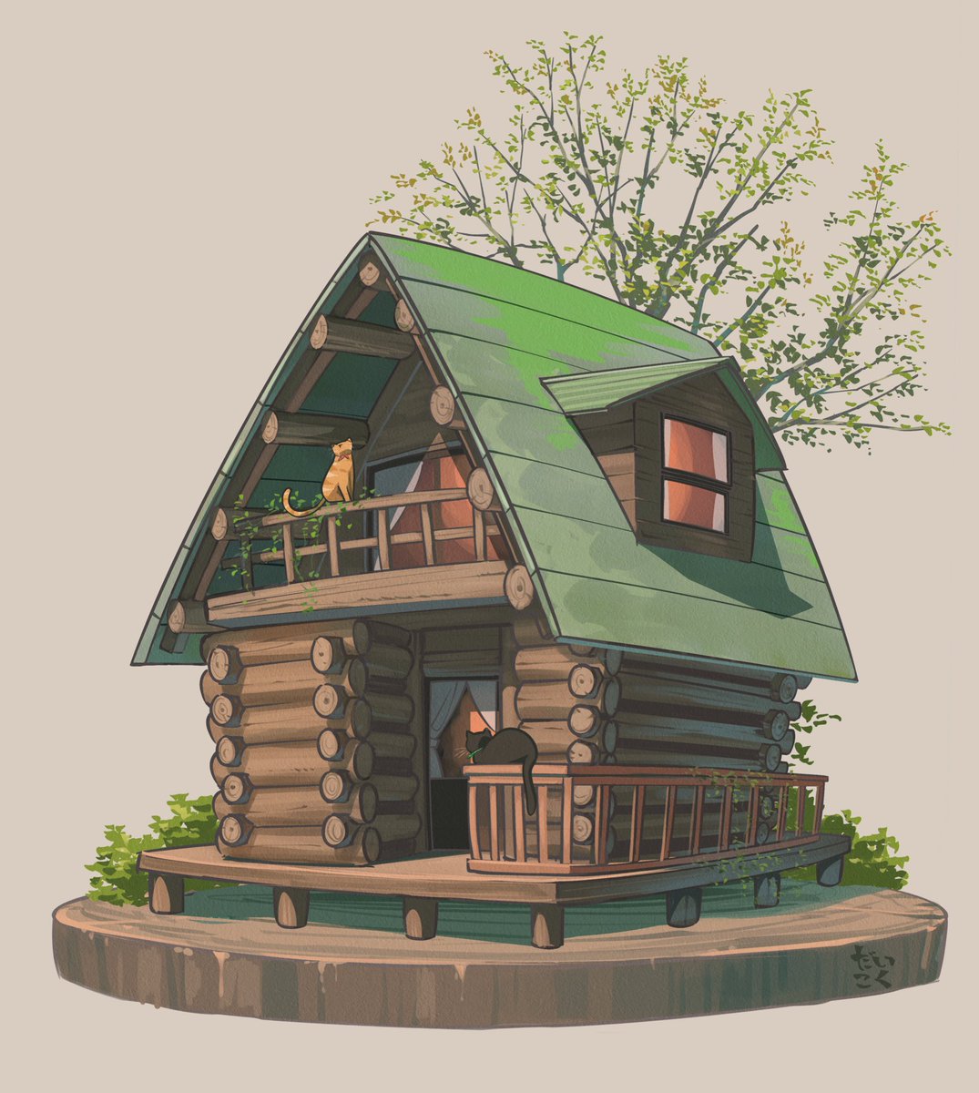 「まめことふーこと丸太のお家」 ※まめこが黒猫、ふーこが茶トラです 今年最後の絵かもしれんです。 今年もありがとうございました感謝です┏○ペコ #猫のいる暮らし #猫好きさんと繫がりたい #イラスト好きさんとつながりたい