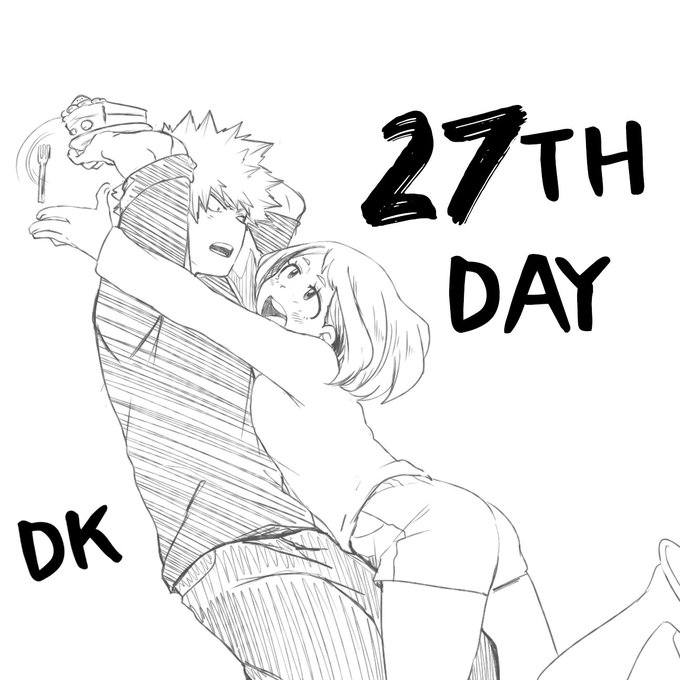 [Day 27 Katsuki Bakugo] Happy birthday Uraraka~this was based on this video twitter.com/dailykrumbs/st… {\__/} ( • . •) / >🍰 want cake? {\__/} ( • - •) 🍰< \ don't read it #ochabowl #kacchako #bakuraka #bakugoxuraraka
