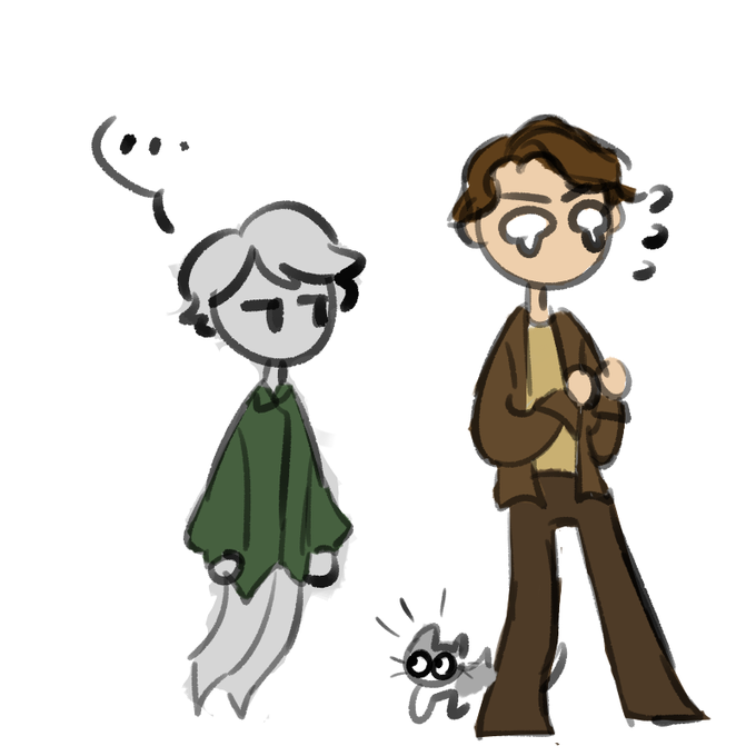 ghost boys meet demon cat. ghost boys befriend and take demon cat home 👻🐱 #tubbofanart #goodtimeswithscarfanart #slushieduo #slurpieduo - admin r