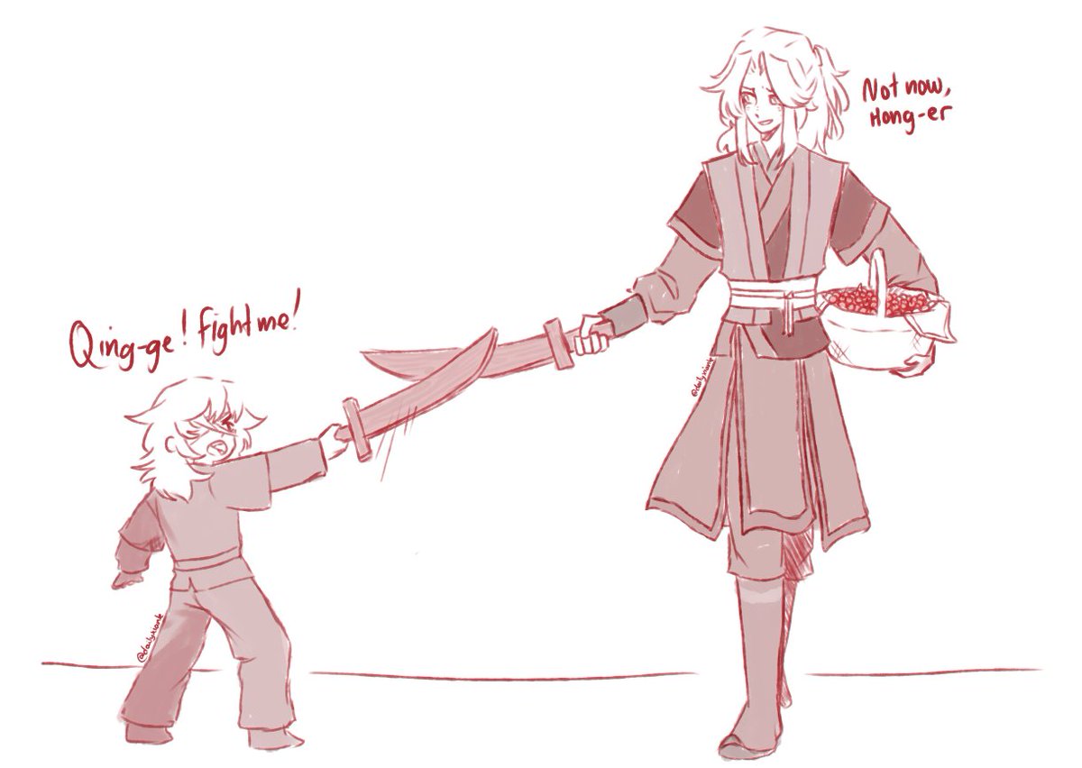 - xie lian - originally passed by to help a woman wash some sheets, he somehow became a babysitter