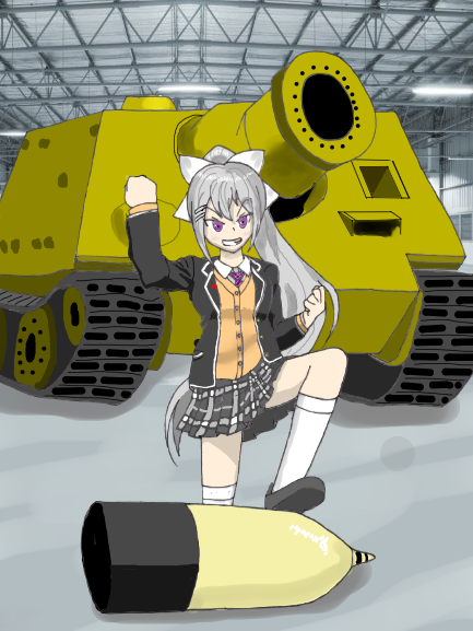 にじさんじミリタリー③ 樋口楓×シュトゥルムティーガー38cmロケット臼砲 おそらく足元の弾丸はガープさんみたいに自分で投げるんでしょうね。。。 ???「投げた方が速ない?」 #でろあーと
