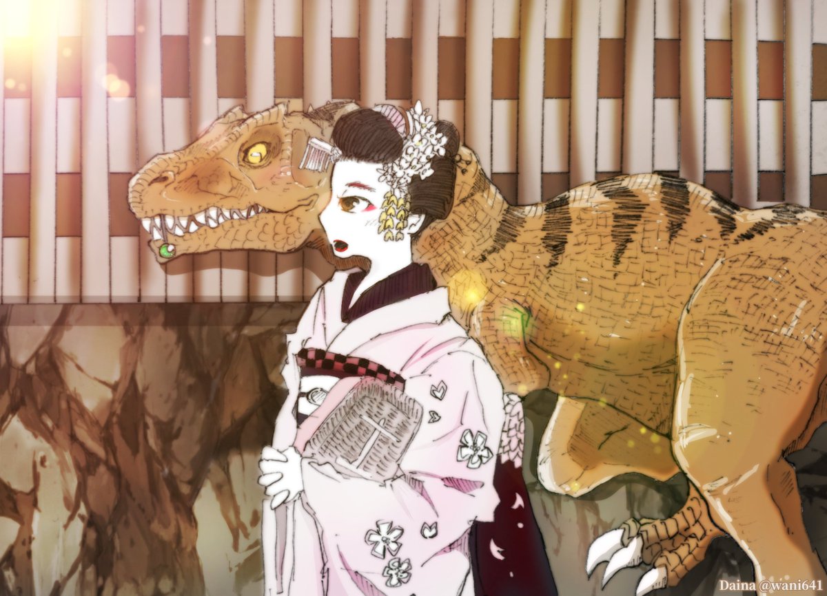 恐竜「これ、落としましたよ」 #アイビスペイント #舞妓 #恐竜