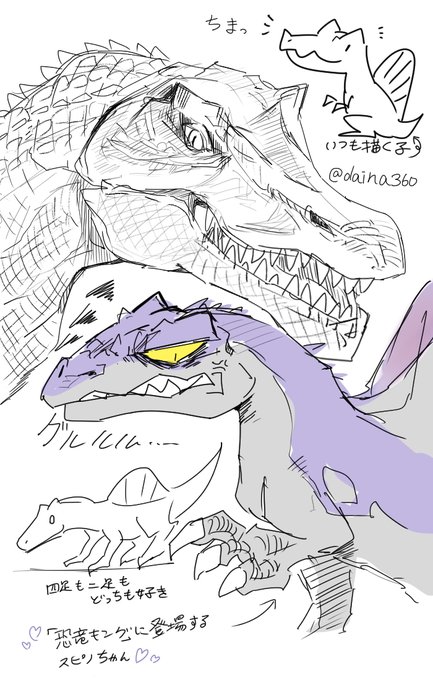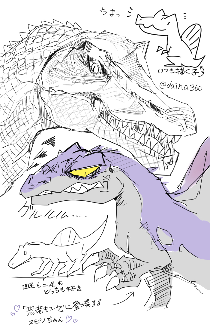 たまには恐竜を描かないと忘れちゃうので、今回はスピノサウルスを描きました✍