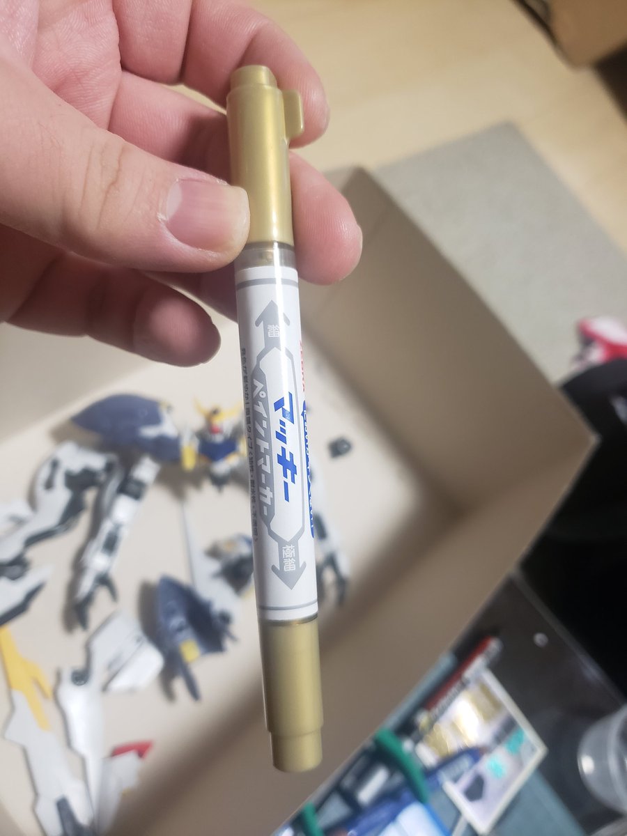 マッキーの金‼️これはいい‼️ ルプスのシリンダー部分、ガンダムマーカーの金だとなかなか発色弱く、試しに使ってみたらいいアクセントになる❗ 楽しくなってきた😁 #ガンプラ好きと繋がりたい