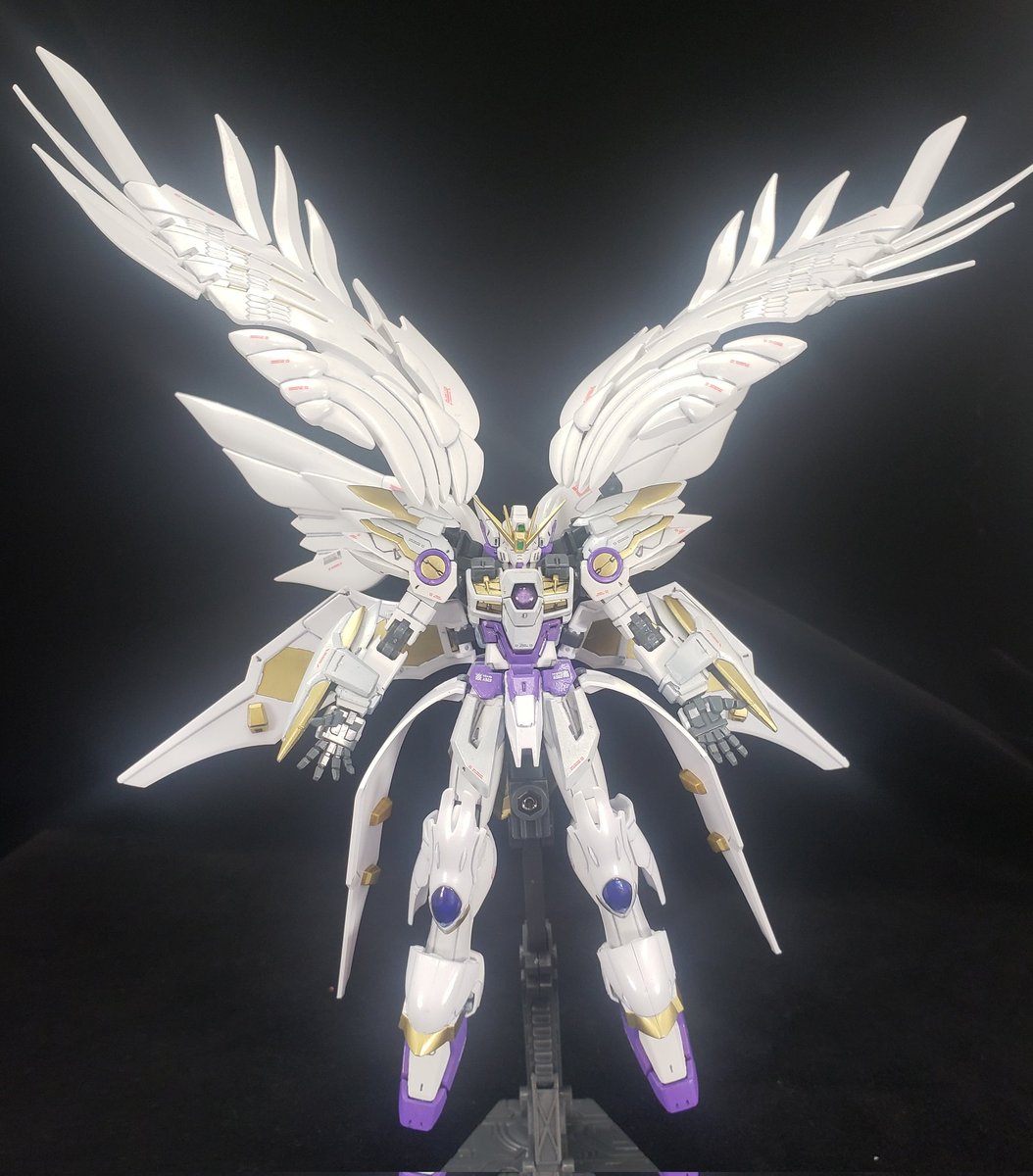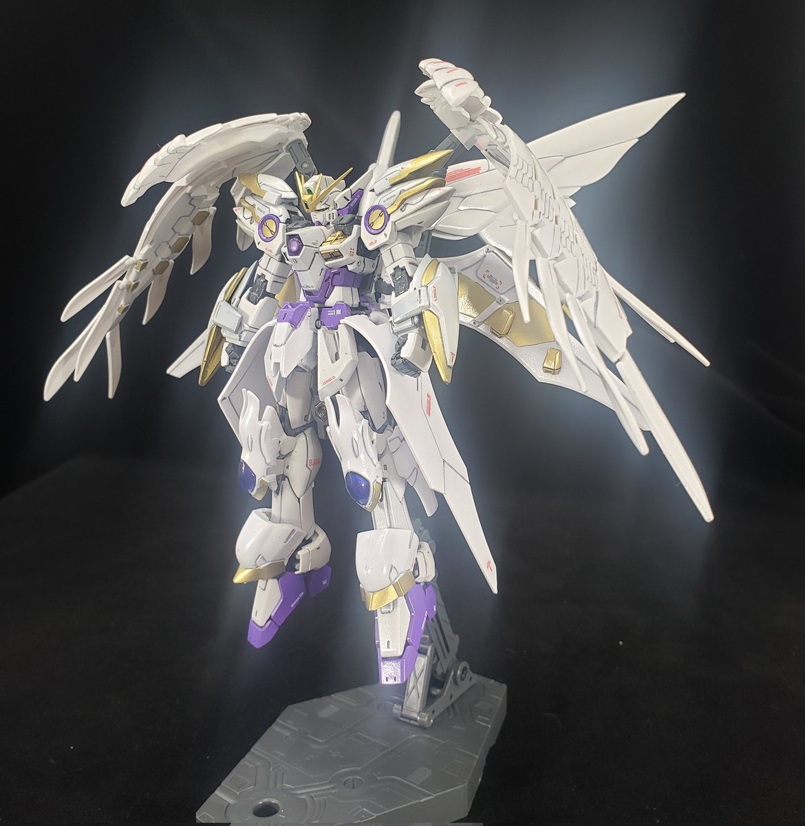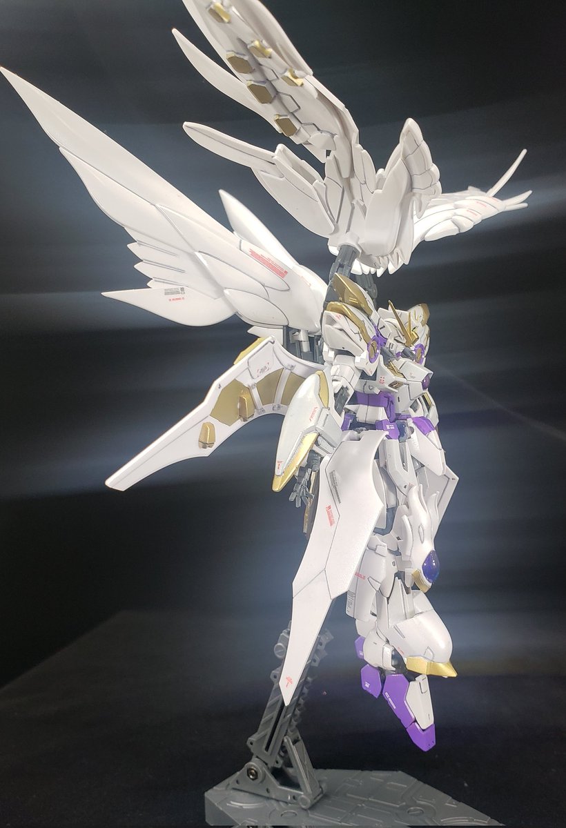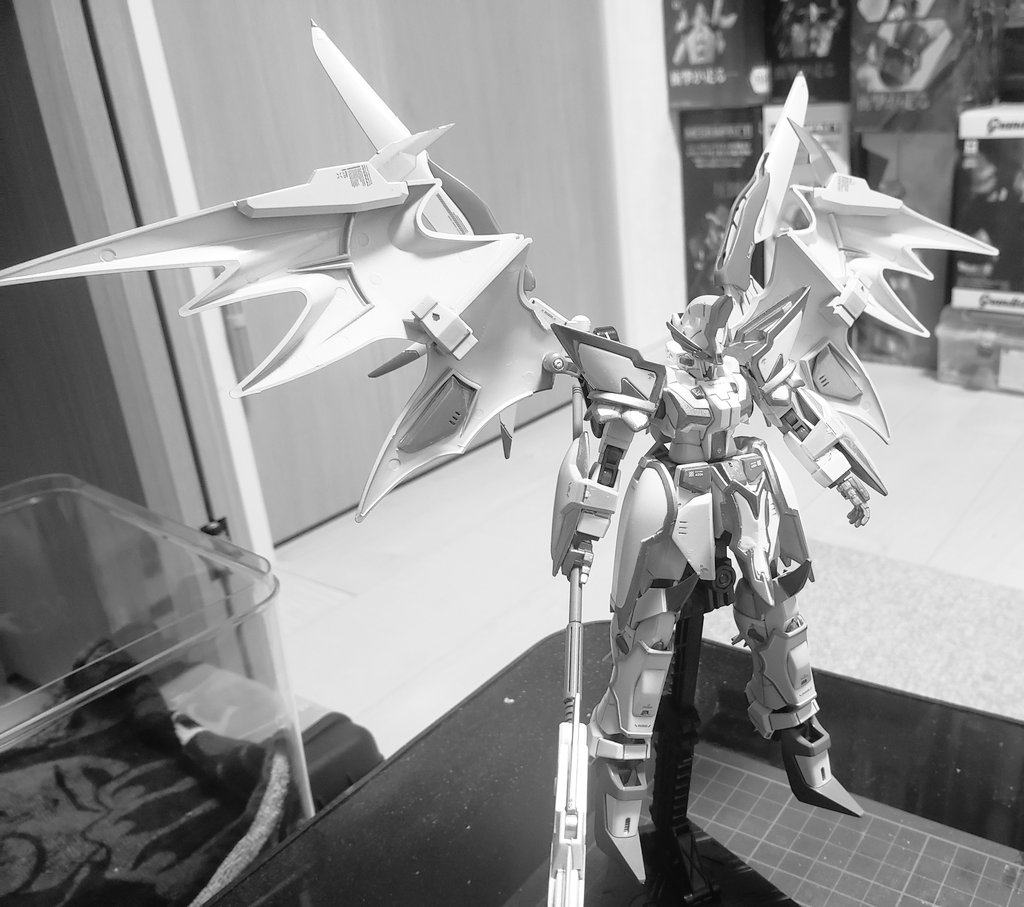 完成‼️ウィングゼロ コードネーム『アラエル』 ウィングも増設し、高機動ながら、腰部のテイルバインダーで安定性を保ち正確な攻撃を可能とした機体‼️ という設定で製作した、ウィングゼロEWです😤 ミキシング素材は、RGウィングゼロとHGリヴランスヘブン❗ 下↓へつづく #ガンプラ好きと繋がりたい