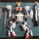 #GEARBOX さんで撮影❗ ミキシングガルバデイリベイク。 鉄血っぽく😁 オルガ専用ガンダムフレーム‼️ ルプスのパーツを流用し重装備型ガンダムフレームへ😤大口径溜弾砲で援護射撃、ハンマープレイヤー、メイスソードで撃破‼️という設定で完成❗ 続く #ガンプラ好きと繋がりた #鉄血のオルフェンズ