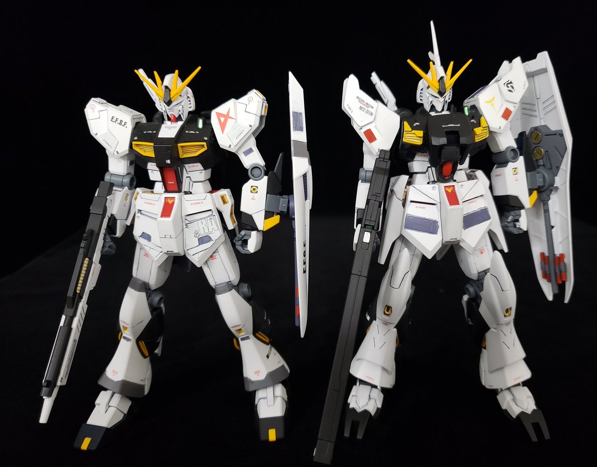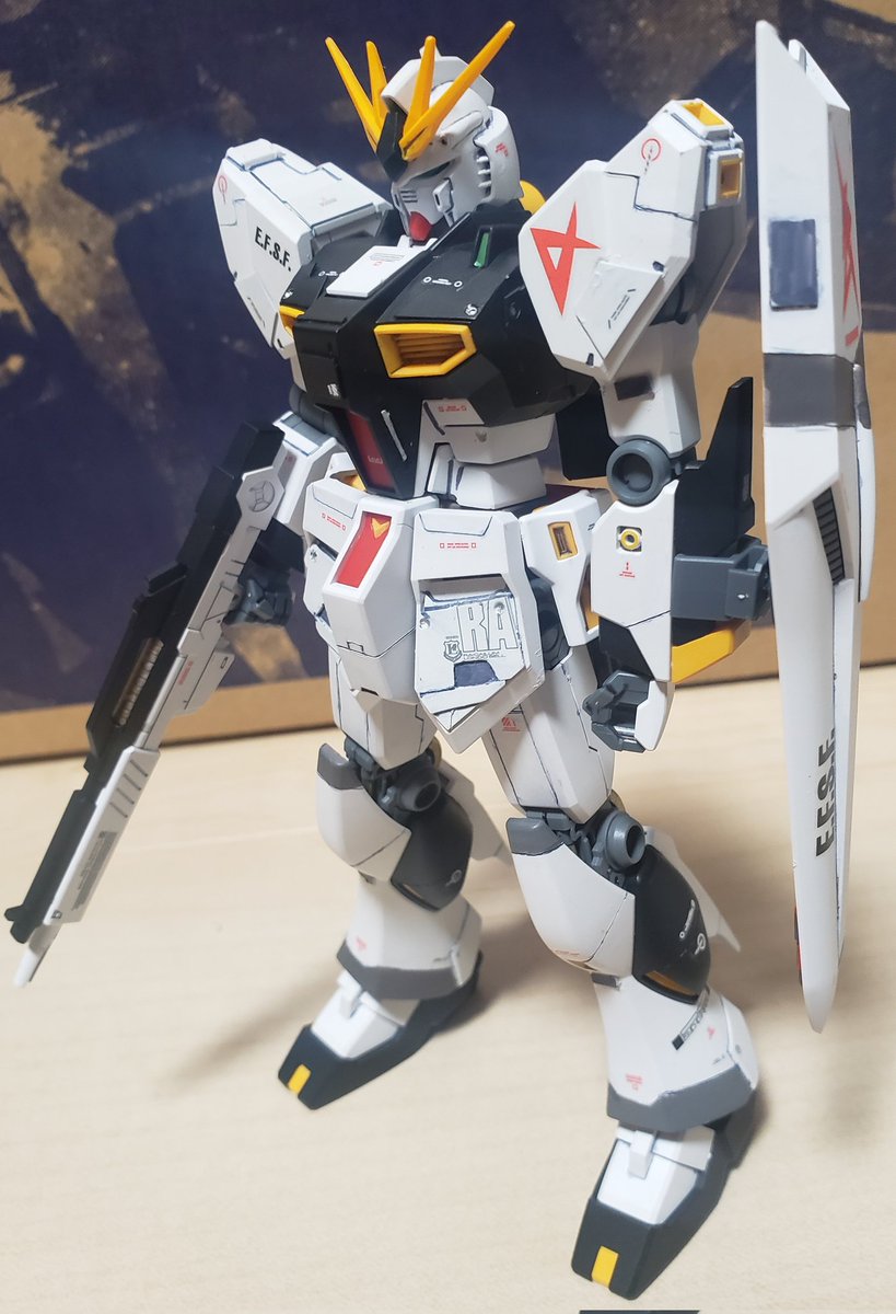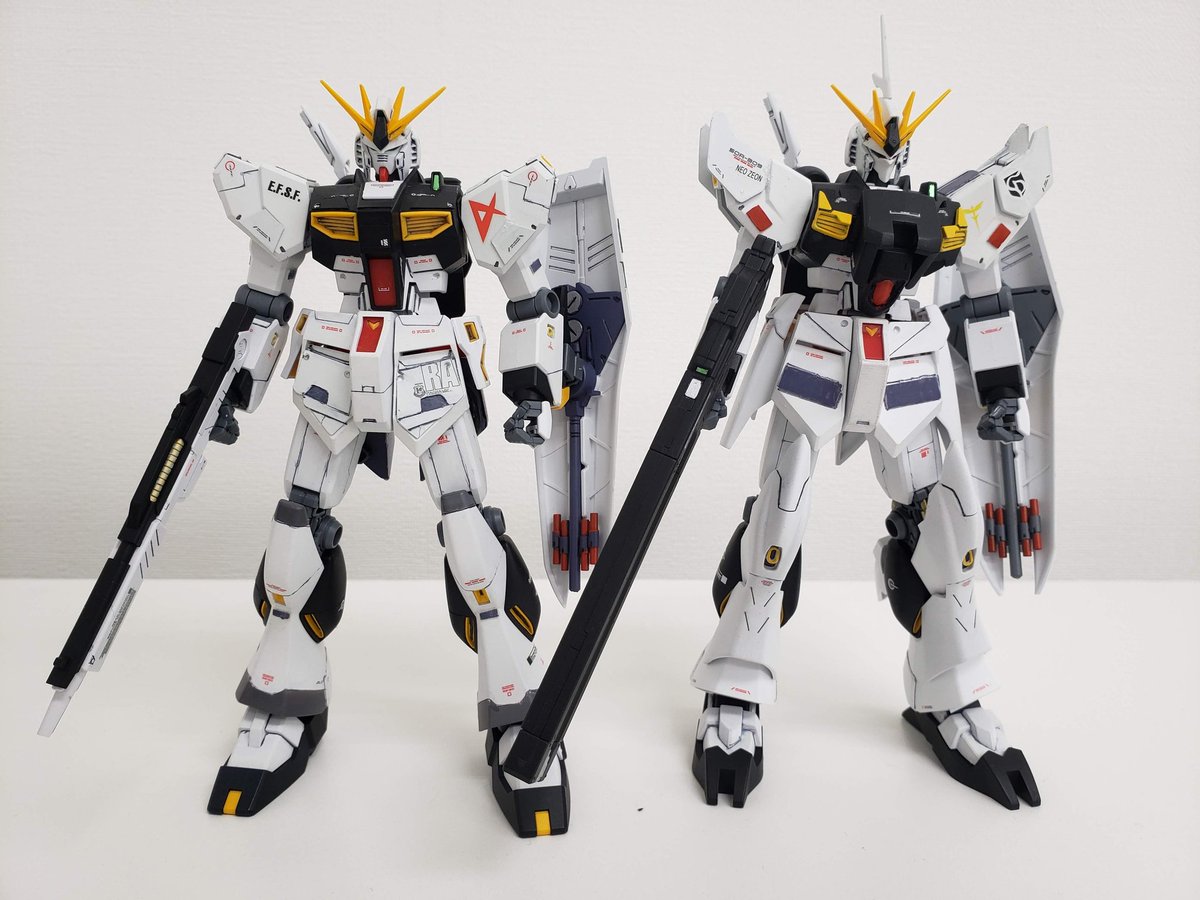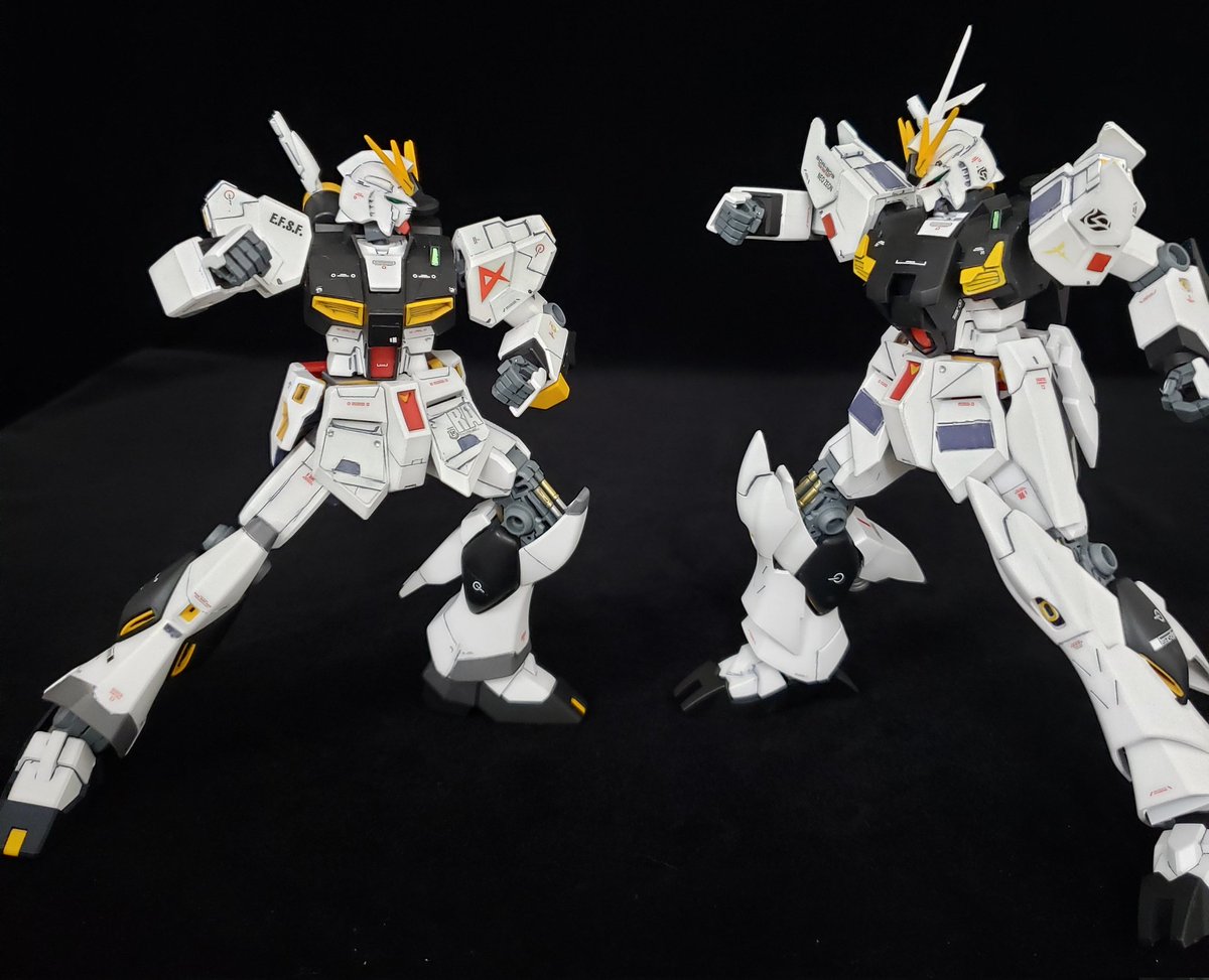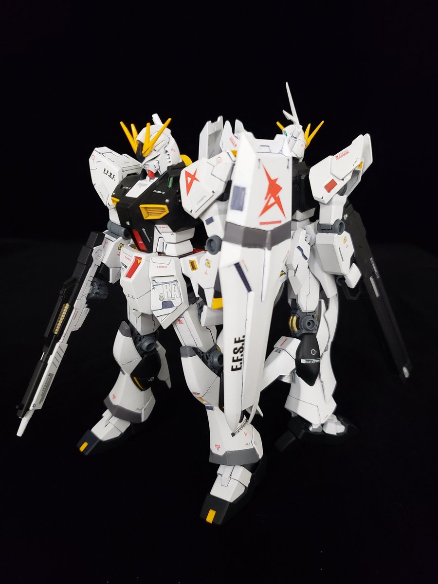EGニューガンダム ミキシング機体ロールアウト‼️ ニューガンダムの設計情報が漏れ、ネオジオンが製造した機体。 パイロットは、シャア・アズナブル。 ニューガンダムと同等の性能を持ち、アムロが乗るニューガンダムと対決‼️ という、if設定で作成しました😁 ↓続きます😆 #ガンプラ好きと繋がりたい