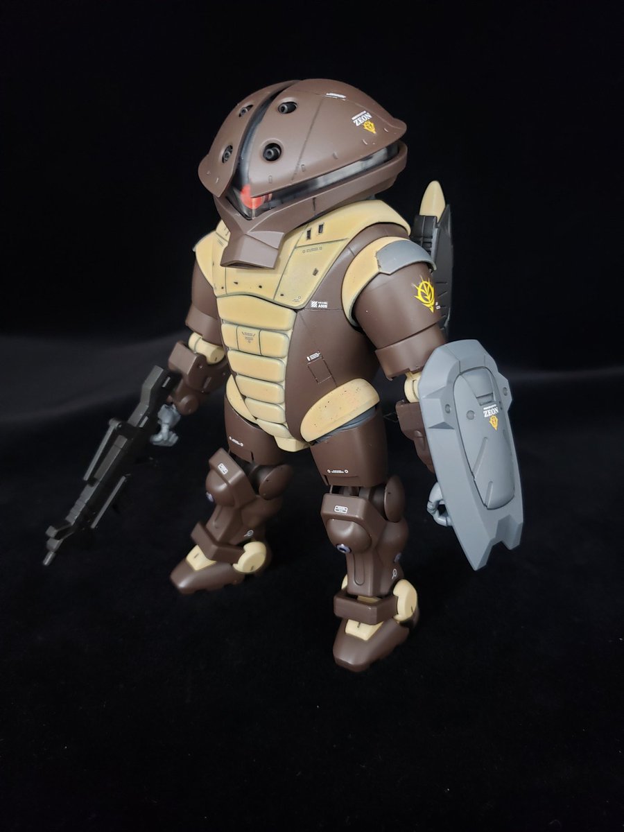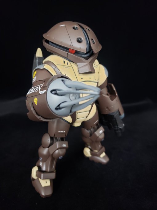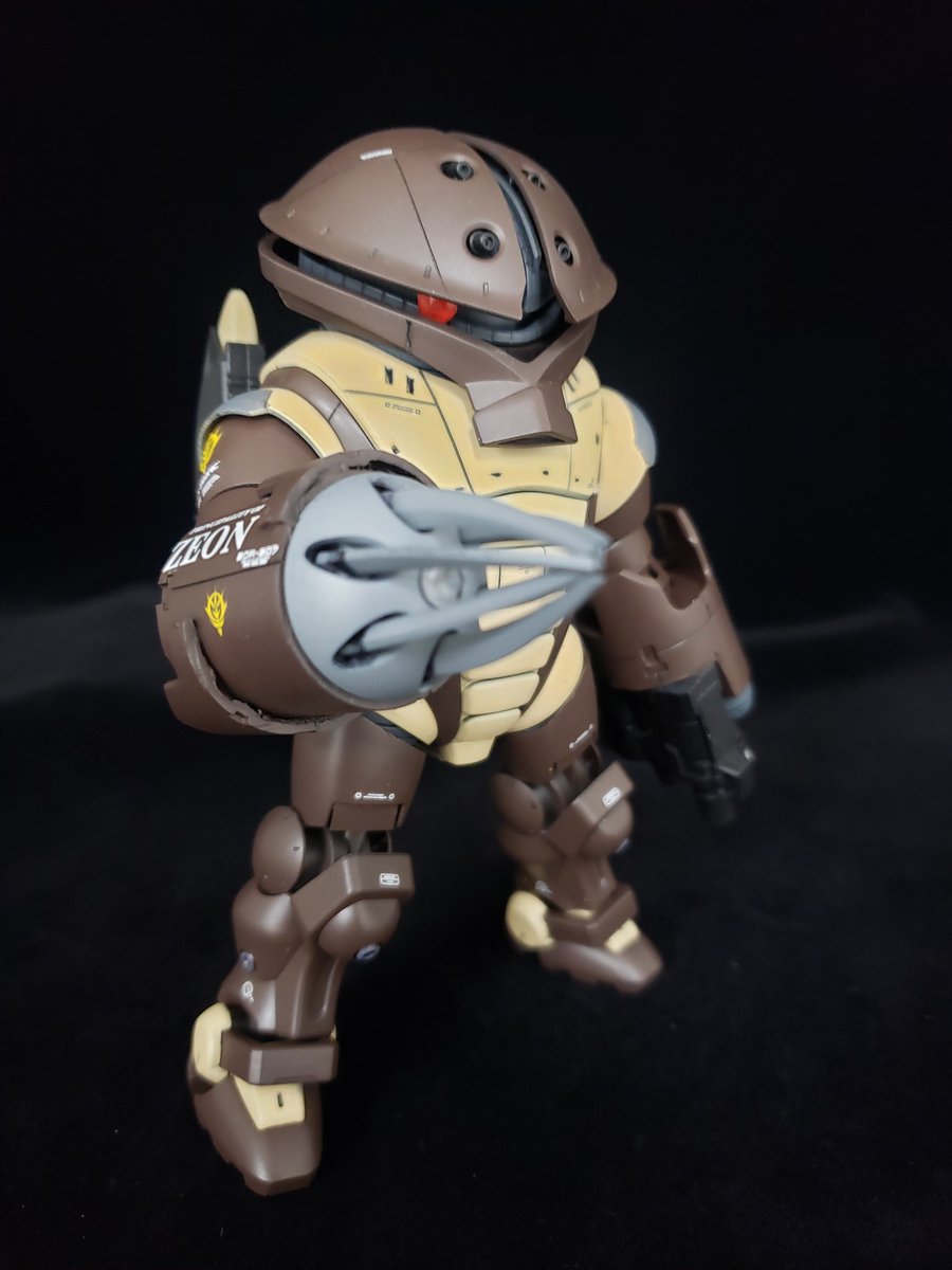 さぁ…今年W新作✨ 二発目は…アッガイ✨ イメージは、サンボルアッガイ😤 マシンガン、シールド、ヒートアックスを基本装備し、腕パーツを換装することで、様々な作戦へと対応できる… という設定で作成しました😁 続く #ガンプラ好きと繋がりたい #サンダーボルト 遠近対応型・基本状態