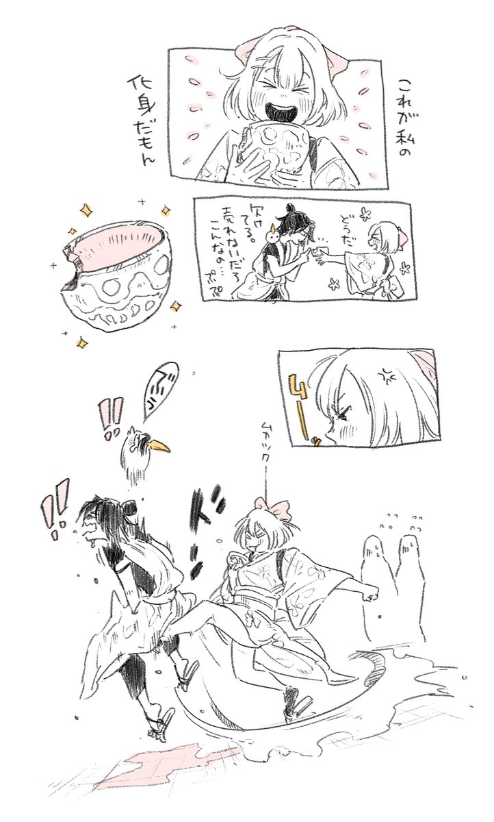 【卒制】 僕のキャラデザを元に、ちょび@minikingameが描いた漫画です。 「化身」=人の魂をかたどった獣。モフモフも化身。 女の子は陶芸家志望で化身を授からなかった子。 #コルクラボマンガ専科 #漫画が読めるハッシュタグ